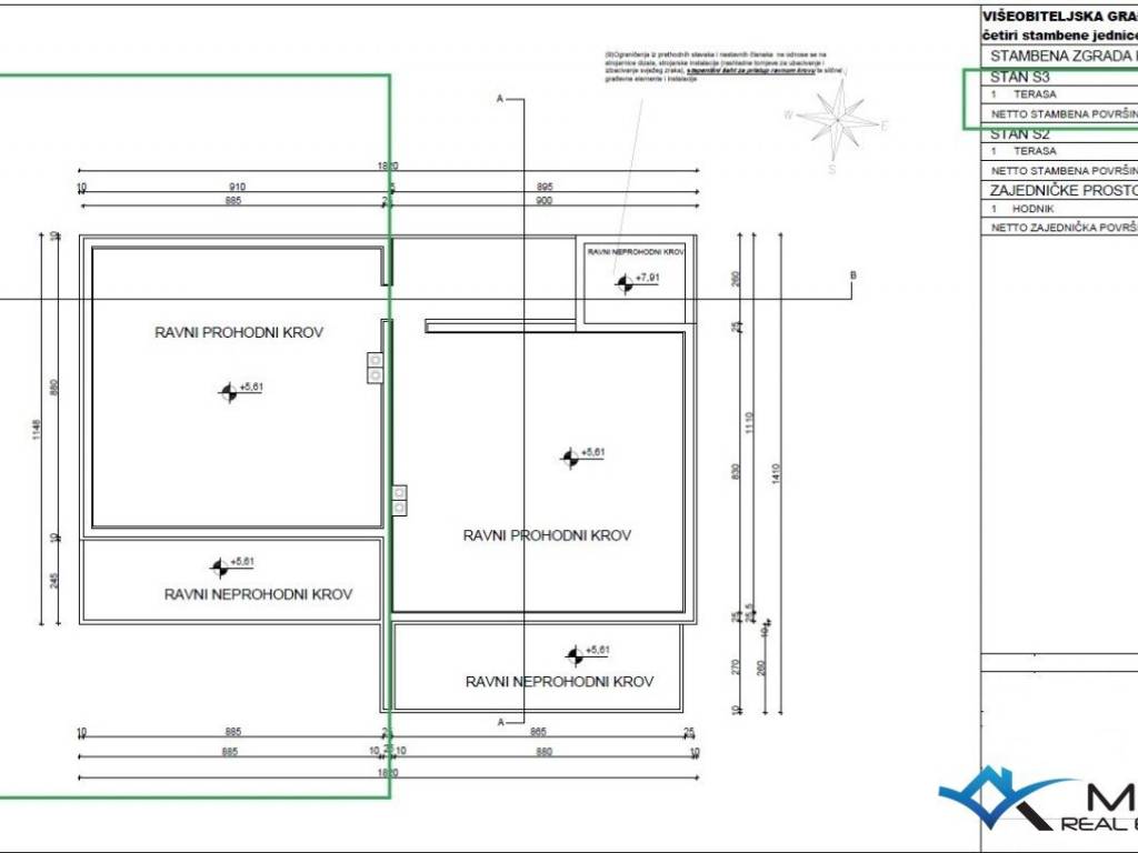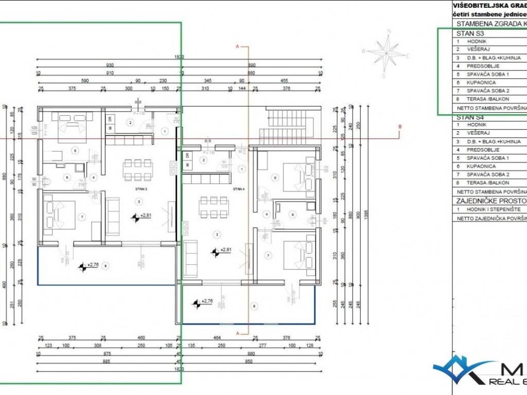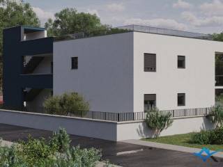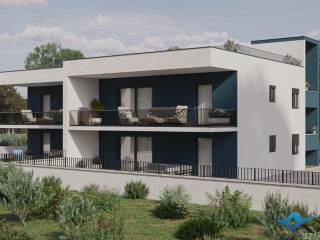 An apartment under construction is for sale, located 1800 m from the sea and 2000 m from the center of Novigrad. The apartment is located on the 1st floor of a building with a total of 4 apartments and has 77 m2. The apartment consists of an entrance hall, a laundry room, a bathroom, 2 bedrooms and an open space where there is a kitchen with a dining room and a living room with access to a large balcony of 21 m2. The apartment has 1 parking space and a large roof terrace of 70 m2 with a view of the sea. The apartment has been prepared for underfloor heating, and cooling is via air conditioning. The apartment can be used for residential or tourist purposes.