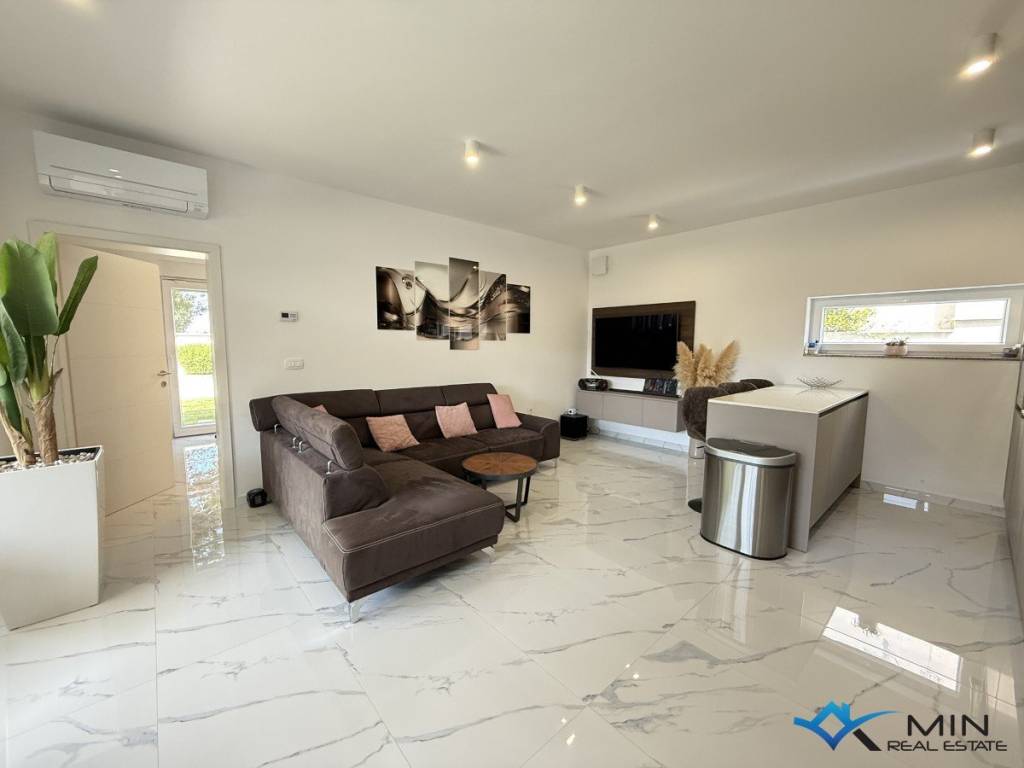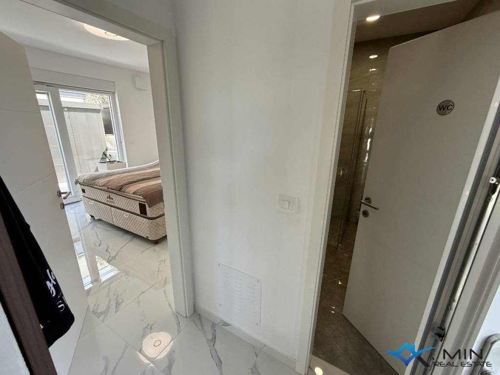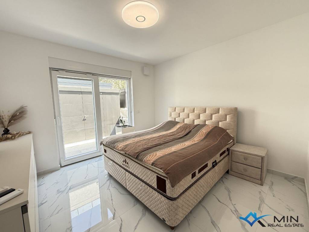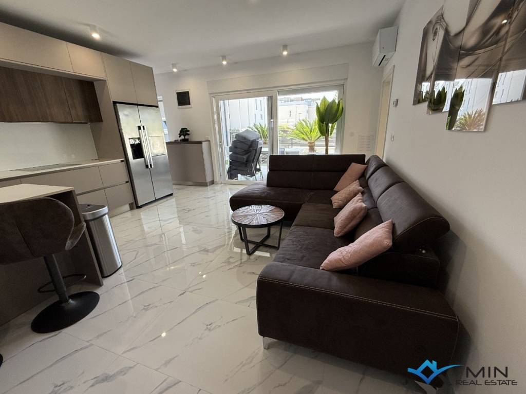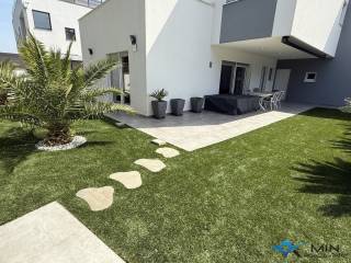 A modern apartment for sale is located close to all amenities in Novigrad and is a few minutes walk from the city center and a beautifully decorated beach. The apartment is located on the ground floor of a building with a total of 4 apartments and has its own private entrance. The apartment is 78 m2 and consists of a hallway, bathroom, 2 bedrooms with exits to the garden and an open space area with a kitchen/dining room and living room with access to the garden. The apartment has a 204 m2 garden that is very nicely decorated and has a summer kitchen with a barbecue, an outdoor shower, storagge room and a room under the stairs that is used as a toilet + additional storage room. The apartment has 1 parking space, and next to the building there are additional parking lots where it is also possible to park.