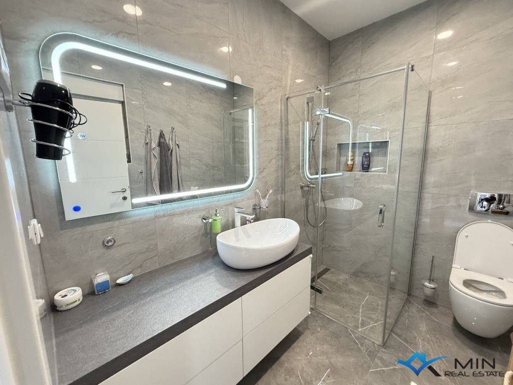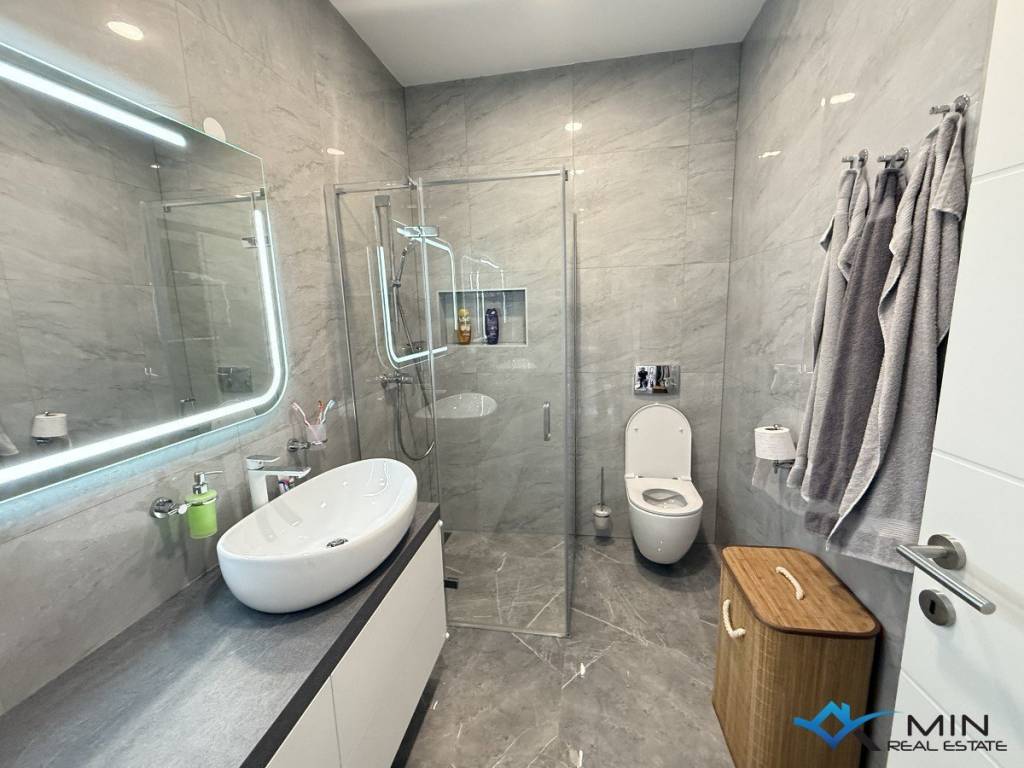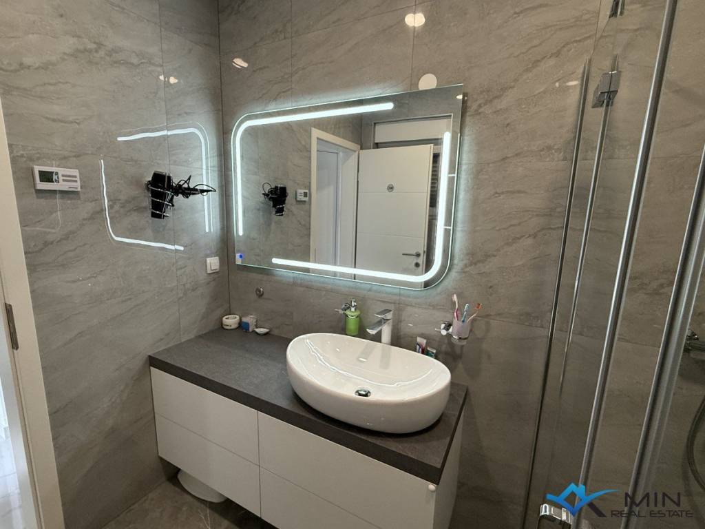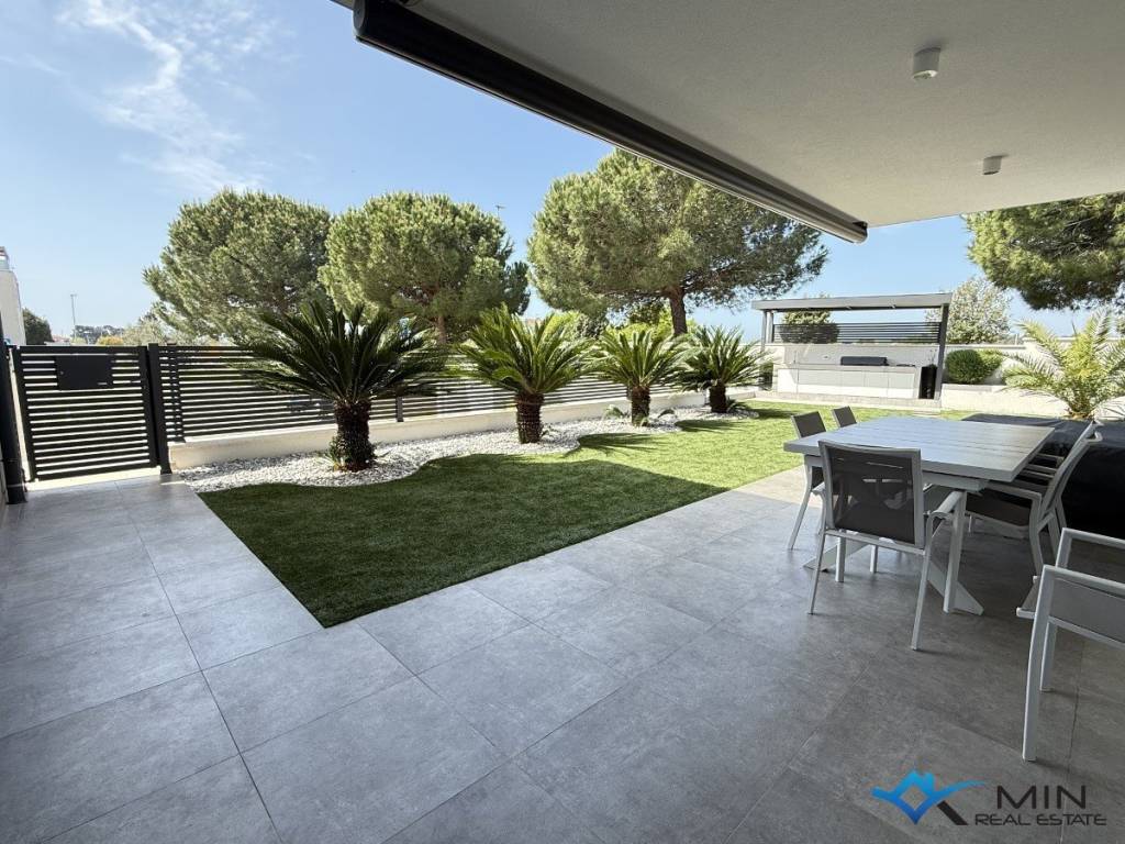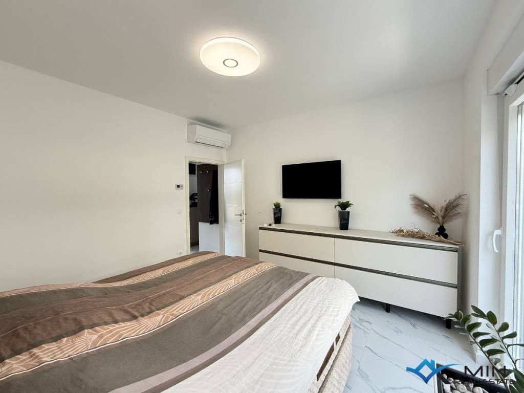 A modern apartment for sale is located close to all amenities in Novigrad and is a few minutes walk from the city center and a beautifully decorated beach. The apartment is located on the ground floor of a building with a total of 4 apartments and has its own private entrance. The apartment is 78 m2 and consists of a hallway, bathroom, 2 bedrooms with exits to the garden and an open space area with a kitchen/dining room and living room with access to the garden. The apartment has a 204 m2 garden that is very nicely decorated and has a summer kitchen with a barbecue, an outdoor shower, storagge room and a room under the stairs that is used as a toilet + additional storage room. The apartment has 1 parking space, and next to the building there are additional parking lots where it is also possible to park.