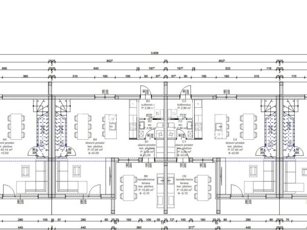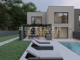 A modern residential terraced house is for sale, located in the immediate vicinity of the town of Novigrad. Construction of the building is set to begin by the end of the year, with plans for each unit to consist of a living room, kitchen, storage room, spacious terrace, and three bedrooms and three bathrooms across two floors. The heating will be underfloor using direct current electricity, while cooling is designed with modern air conditioning units. The facade will be equipped with 10 cm thick EPS insulation and PVC joinery. In the yard, there will be an 18 m swimming pool and a total of two parking spaces. An excellent location in a peaceful and green environment, surrounded by residential houses and holiday properties.