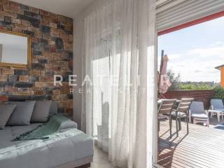 The courtyard of the house is oriented to the south and consists of a terrace with a pool and a jacuzzi.