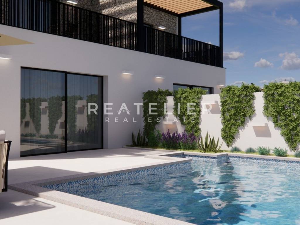 Upstairs, there are two bedrooms, each with its own en-suite bathroom and terrace. Underfloor heating will be installed in all rooms, and cooling will be provided by air conditioning units. The house has two parking spaces and a fast charger for electric vehicles. The property has also been prepared for solar panels on the roof and for a heated pool. The center of Umag is only a few minutes' drive away.