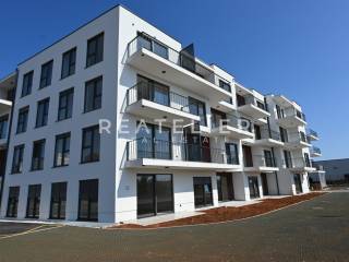 Outstanding modern residential project with 122 housing units located in the town of Umag, near numerous commercial and social amenities. Particularly notable is the proximity to schools, various shops, and a contemporary multipurpose sports playground just a hundred meters away from the building itself. The entire building structure is designed with reinforced concrete. Inside the apartments, partition walls are made of double-thick gypsum boards to provide additional thermal and acoustic insulation. The facade cladding with 10 cm thermal insulation ensures excellent energy efficiency. External openings are equipped with high-quality PVC profiles (electric blinds in the bedrooms). Only high-quality large-format ceramics and premium parquet flooring are used for the floor coverings. Each apartment is equipped with a high-quality multisplit heating and cooling system and has its own water and electricity meter. All apartments are equipped with telephone, antenna, TV, and internet connections, with intercom installation including a video intercom for each unit. Ground floor units come with additional outdoor space, while each unit in the project comes with 1 or 2 parking spaces (covered parking or garage). Expected completion of construction is scheduled for 6/2025.