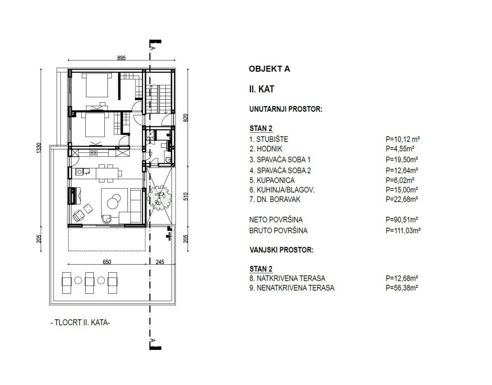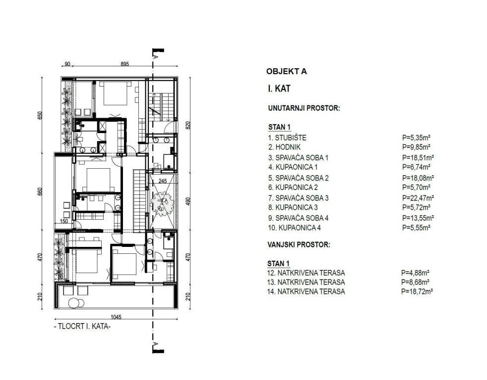 Stan 1 - dvoetažan (prizemlje i prvi kat) s bazenom i garažom.