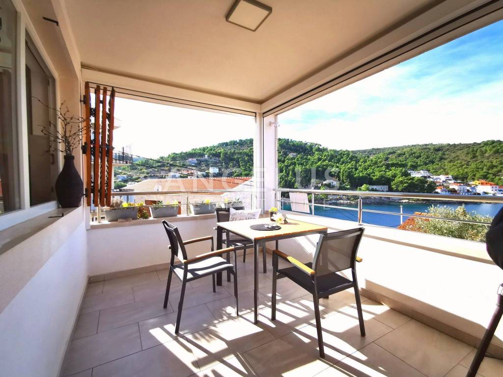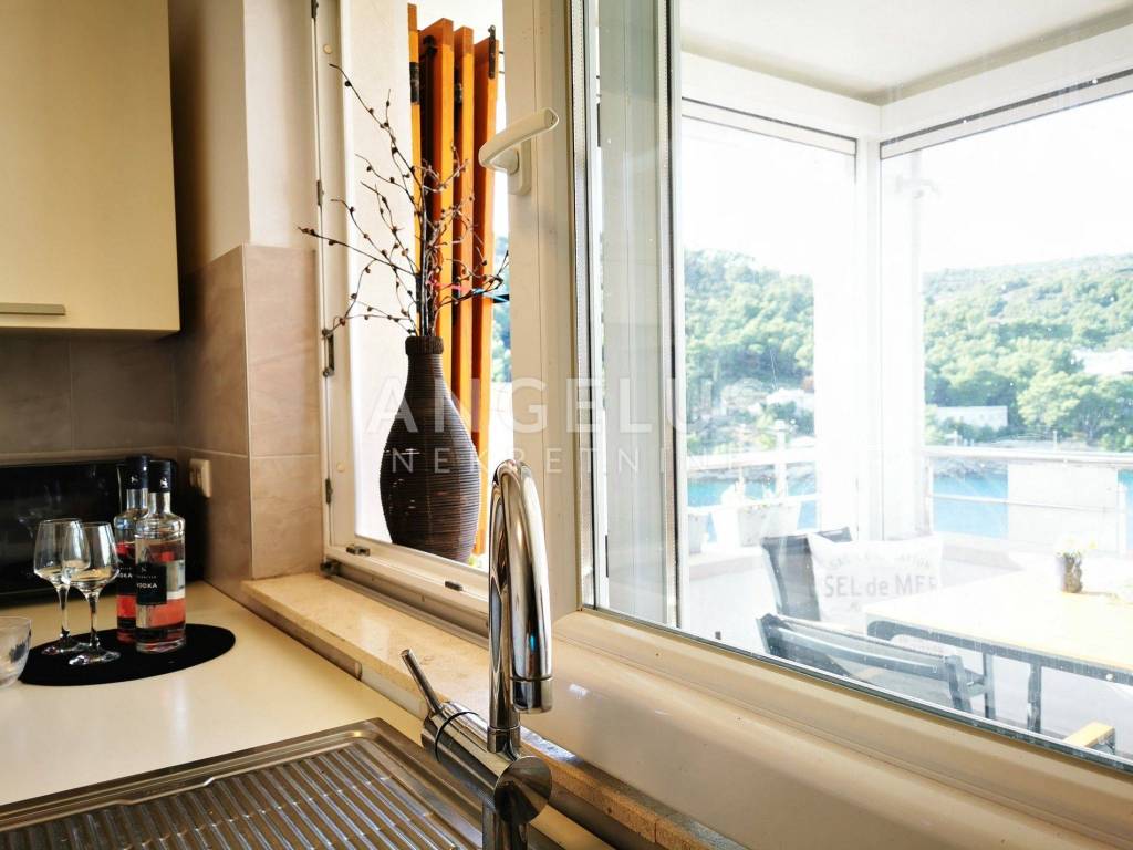 Real Estate Agency Angelus nekretnine offers for sale a two-bedroom furnished apartment with parking and sea view in Stomorska on the island of Šolta