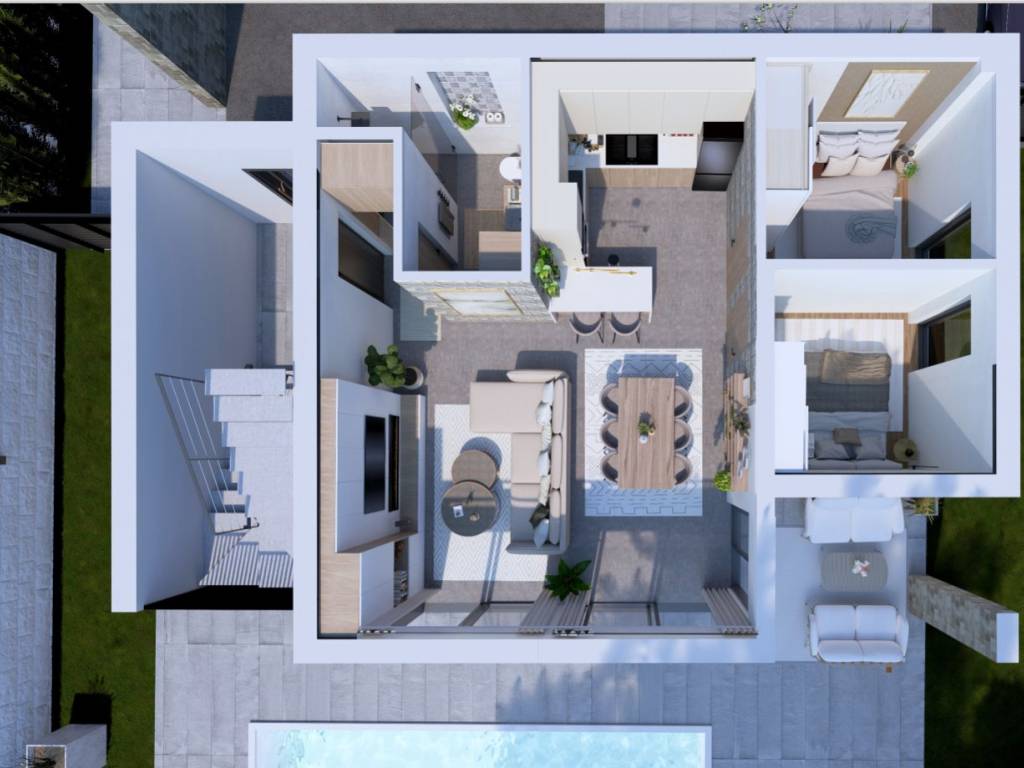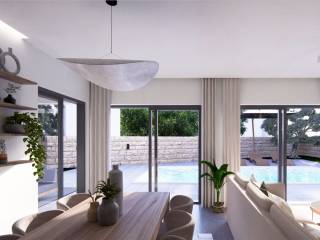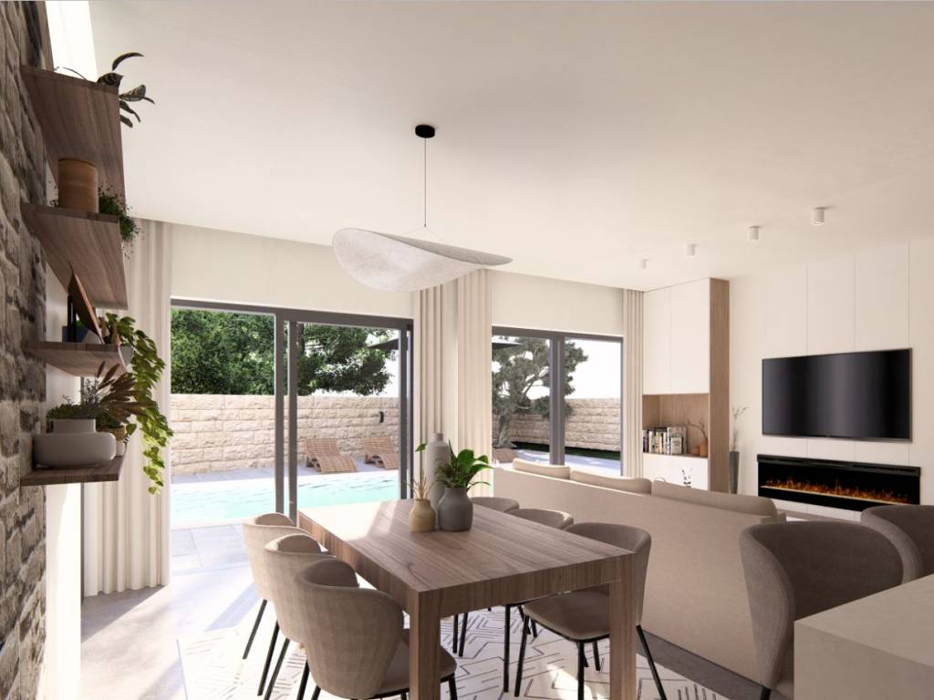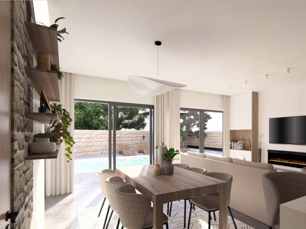 Punta skala, novogradnja, objekt sa ukupno četiri stambene jedinice 2. red od mora. Jedinstvena lokacija, idealna za odmor i opuštanje, svega nekoliko kilometara od grada Zadra, te blizine zračne luke Zemunik (10km). U prizemlju je na prodaju stan oznake S1, na sjeverozapadnom dijelu zgrade, a sastoji se od: kuhinje, blagovaonice i dnevnog boravka | 37,10m2 spavaće sobe 1 | 9,53 m2 spavaće sobe 2 | 9,49 m2 kupaonice | 5,38 m2 hodnika | 2,05 m2 UKUPNO veličina stana 63,55 m² Nekretnina ima sljedeće dodatne dijelove i pripatke: natkrivena terasa | 13,00 m² natkriveno parkirališno mjesto | 13,75 m² nenatkriveno parkirališno mjesto | 13,75 m² vanjska terasa | 58,24 m² vrt | 101,53 m² Ukupna površina stana S1 s dodatnim dijelovima i pripatcima iznosi 263,82 m², a ukupna korisna vrijednost površine iznosi 101,48 m². Stan u prizemlju imat će privatni vanjski bazen veličine 7,6×4 m u velikom privatnom vrtu. Krasit će ga velike staklene stijene koje, osim što daju stanu obilje dnevnog svjetla, omogućavaju pogled na bazen iz velikog dnevnog otvorenog prostora. Dvije sobe bit će uređene kao spavaće sobe s ugradbenim garderobnim ormarima i bračnim krevetima. Dnevni prostor uključuje L-kuhinju sa šankom i svim potrebnim aparatima, prostor za blagovanje sa stolom i 6 stolica te veliku sjedeću garnituru ispred koje se nalaze kamin i veliki TV ravnog zaslona. Elegantna kupaonica sadržavat će tuš kabinu te vertikalno postavljene perilicu i sušilicu rublja. Svi stanovi bit će uređeni s parketima i keramikom prve klase. U cijenu će biti uključena kompletna kuhinja s aparatima. Planirano useljenje je 10. mj. 2026. godine. Više informacija na upit.