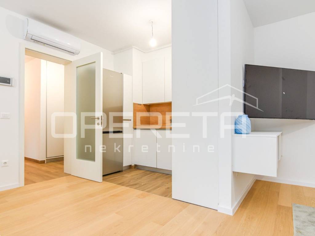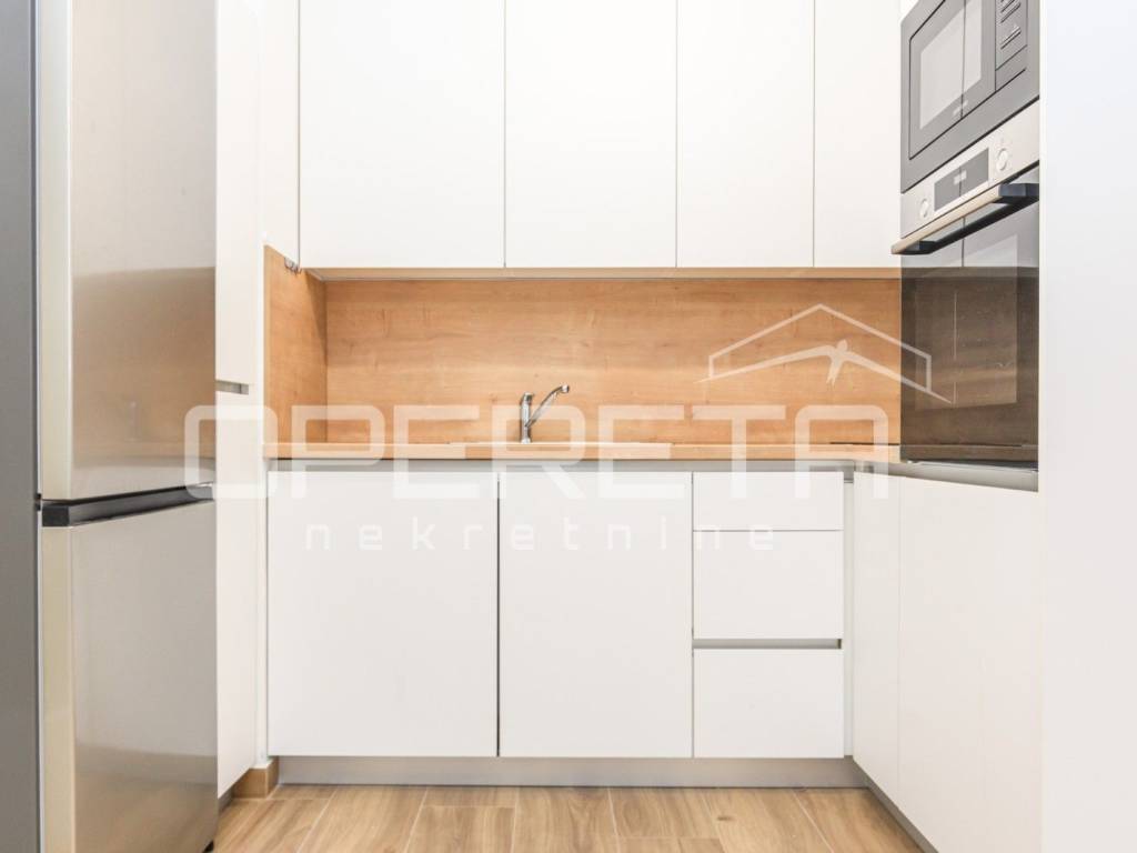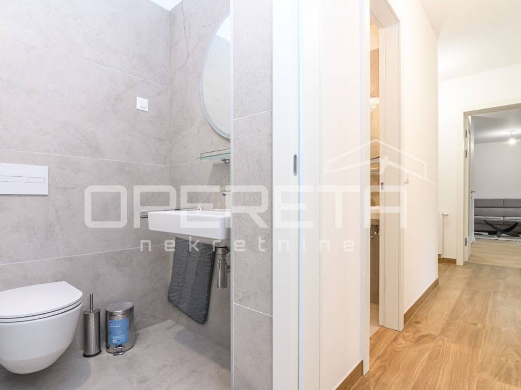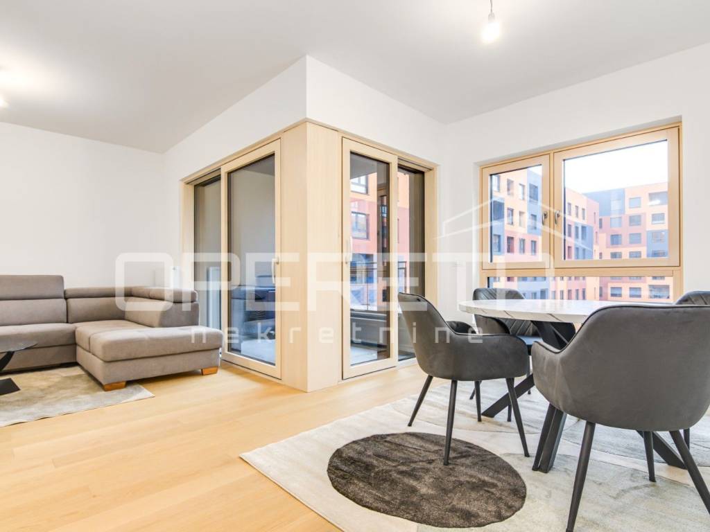 A 3-room apartment in a new building is for rent on Ivana Cankara Street. The apartment consists of an entrance hall, a living room with a kitchen and a dining room, which opens onto a spacious loggia, 2 bedrooms and 2 bathrooms (one bathroom has a bathtub and the other a shower).