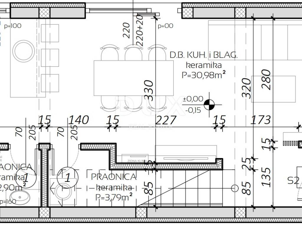Upstairs there are three comfortable bedrooms and an additional bathroom, and each room has access to a balcony with a view of the sea and picturesque Nin. The house has a total of 116 m2 of net area and provides a perfect balance between modern comfort and Mediterranean ambience.
