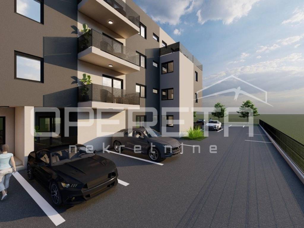 A new apartment for sale in a desirable location in Novi Zagreb - Odra. The apartment is located on the first floor of a residential building. It consists of an entrance area, a living room with a kitchen and dining room, two bedrooms, a bathroom and a storage room. The living room has access to a balcony. There is an outdoor parking space available with the apartment, which is included in the price of the apartment. There is a possibility of purchasing an additional parking space. The price of the apartment is 2,500 eur / m2 . Reservations are accepted.