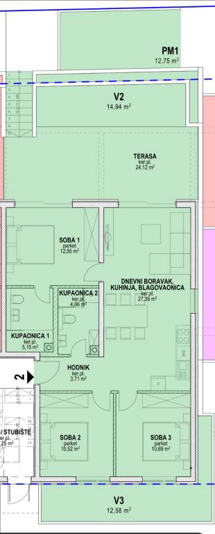 Predstavljamo Vam projekt vrhunske novogradnje u Povljani na otoku Pagu na top lokaciji! Projekt se sastoji od zgrade s 8 jedinica stambene namjene raspoređenih na ukupno 3 etaže. Zgrada je udaljena svega 180 m od mora i popularnih pješčanih plaža ovog mjesta. Također, u neposrednoj blizini se nalazi i centar Povljane kao i svi ostali sadržaji potrebni za kvalitetan i ispunjen život ili odmor.S2 - 89,94m2 - prizemljeStan S3 nalazi se na 1. katu zgrade te je ukupne neto korisne površine 89,94m2 dok njegova bruto površina iznosi 125,68m2. Sastoji se od otvorenog prostora kuhinje, blagovaonice i dnevnog boravka (27,36m2), hodnika (3,71m2), dvije potpuno opremljene kupaonice (5,15m2 i 4,66m2), tri spavaće sobe (12,55m2, 10,96m2 i 10,52m2) te natkrivene terase s kojeg se pruža prekrasan pogled na more (24,12m2). Stanu uz to pripada i vrt (27m2) te jedno vanjsko parkirno mjesto.Zgrada se trenutačno nalazi u fazi završnih radove te se useljenje očekuje početkom 2026. godine.Od opreme i materijala valja istaknuti :Konstrukcija od armiranog betona s 10 cm termoizolacijeKvalitetna ALU i PVC stolarija s komarnicima i roletama na električno upravljanjeVisoka kvaliteta keramike i sanitarijaProtuprovalna i protupožarna vrataKlima uređaji u svim sobama i dnevnom boravkuStaklene ograde na balkonimaDvorište ograđeno kamenim zidovimai još mnogo toga..Povljana je šarmantno dalmatinsko mjesto na otoku Pagu, poznato po dugim pješčanim plažama i kristalno čistom moru. Idealan je izbor za nekretnine za odmor ili turistički najam — autentičan dalmatinski ugođaj, prostrane terase i blizina lokalnih restorana. Dobra prometna povezanost cestom te blizina važnijih otočnih i kopnenih odredišta čine Povljanu privlačnom investicijskom lokacijom na Pagu.Za više informacija i dogovor o razgledavanju, slobodno nam se obratite