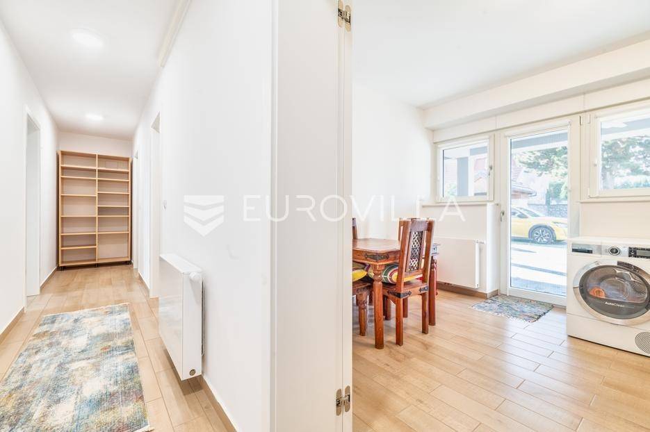 ZagrZagreb, Lašćinska cesta, trosoban stan u prizemlju novogradnje (2015.), u manjoj stambenoj zgradi sa samo dva stana. Stan se sastoji od velikog ulaznog hodnika, prostrane dnevne sobe, kuhinjom s blagovaonicom, dvije spavaće sobe, kupaonice te odvojenog toaleta. Zatvorena površina stana je 65 m2 s pripadajućom garažom od 16m2, ukupno: 80.90 m2. Nalazi se u mirnom okruženju, uz odličnu povezanost s gradom javnim prijevozom. Stanu pripada garažno parkirno mjesto, a ima i izlaz na natkrivenu prizemnu terasu. Iznajmljuje se isključivo dugoročno. Sve dodatne informacije na upit.