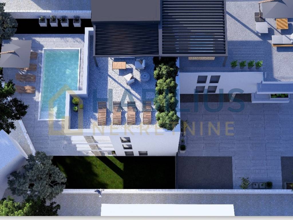 Prodaje se luksuzan stan u mjestu Petrčane, povrčine 96,55 m2, na prvom katu dvokatnice, svega 30 metara od mora. Sastoji se od kuhinje, blagovaonice, dnevnog boravka, dvije spavaće sobe, kupaonice odvojenog wc-a, hodnika i natkrivenog balkona. Stanu pripadaju i dva parkirna mjesta, te krovna terasa od 71,59 m2.