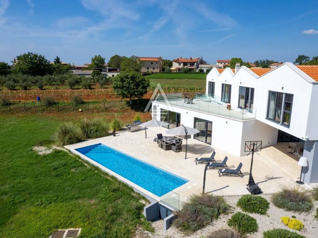 Discover an exceptional villa for sale in Višnjan, positioned on the tranquil edge of a charming Istrian village. Surrounded by greenery and full privacy, this contemporary residence blends modern architecture with refined comfort on a spacious 6,271 m² plot. The villa includes 454 m² of indoor living space and an additional 119.47 m² of terraces designed for premium outdoor living.