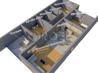 Four-room apartment located in Stupnik, NKP 95 m2 (S2). It is located on the ground floor of a one-story building. It consists of an entrance hall, three bedrooms, two bathrooms with toilets, a kitchen with a dining area, a living room and a utility room. The apartment has a garden of 50 m2 (net: 5 m2). It is equipped with PVC joinery, air conditioning, security doors and a video intercom. The floor is covered with parquet and ceramics. Heating is provided by heat pumps.