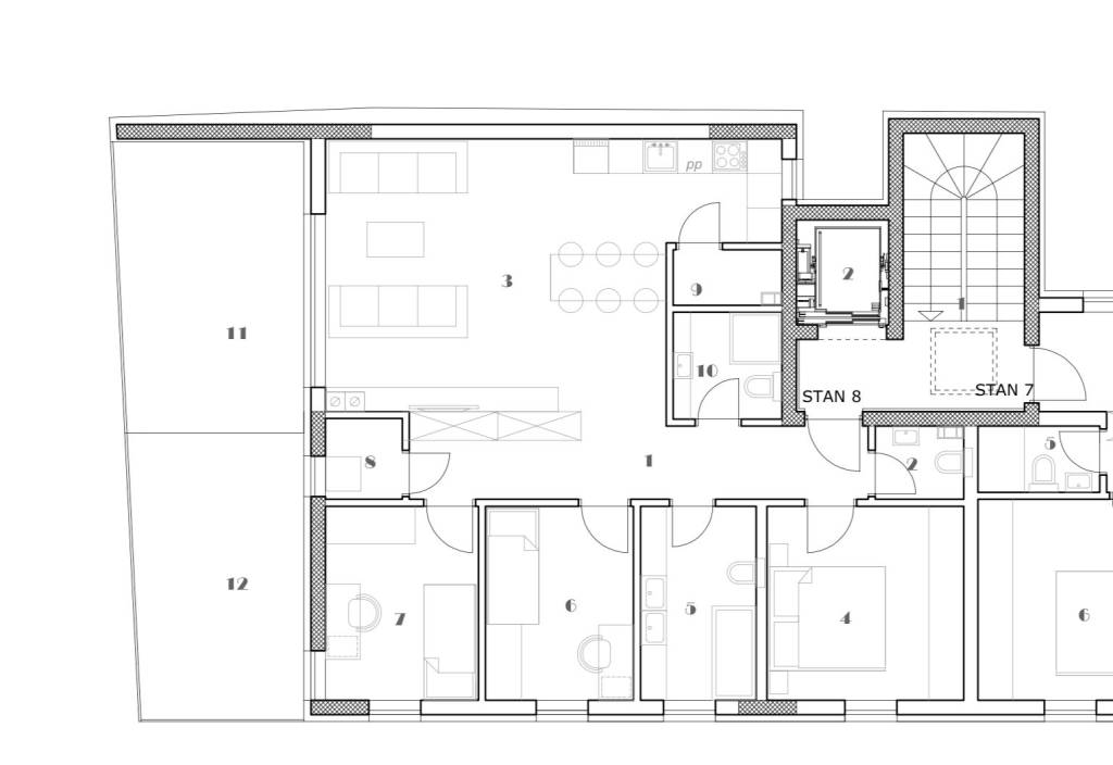 Osijek, Centar - prodaje se četverosoban stan na trećem (zadnjem) katu zgrade s liftom. Zgrada je trenutno u roh-bau fazi izgradnje. Očekivano useljenje je jesen 2026. godineStan se sastoji od prostranog dnevnog boravka s kuhinjom i blagovaonicom (32 m²), tri spavaće sobe (11 m², 9 m², 9 m²), dvije kupaonice, toaleta, vešeraja, ostave i hodnika. Zatvorena površina stana iznosi 87 m². Uz stan dolazi natkrivena terasa od 16 m² i balkon od 14 m², što čini ukupnu neto prodajnu površinu od 99 m². U cijenu je uključeno i natkriveno parkirno mjesto.Zgrada je visokokvalitetne gradnje, s velikim aluminijskim stijenkama, atraktivnom fasadom i ravnim krovom. U stanu će biti ugrađene visokokvalitetne sanitarije, podne obloge (parket i keramika), videoportafon, stolarija s električnim podizačima te dva klima uređaja.Lokacija je iznimno povoljna - 10 minuta hoda do samog centra grada. U neposrednoj blizini nalaze se škola, vrtić, trgovine, javni prijevoz i ostali sadržaji potrebni za ugodan obiteljski život, dostupni pješice. Orijentacija jug-zapad pruža obilje prirodnog svjetla tijekom cijelog dana.Za više informacija stojimo na raspolaganju.