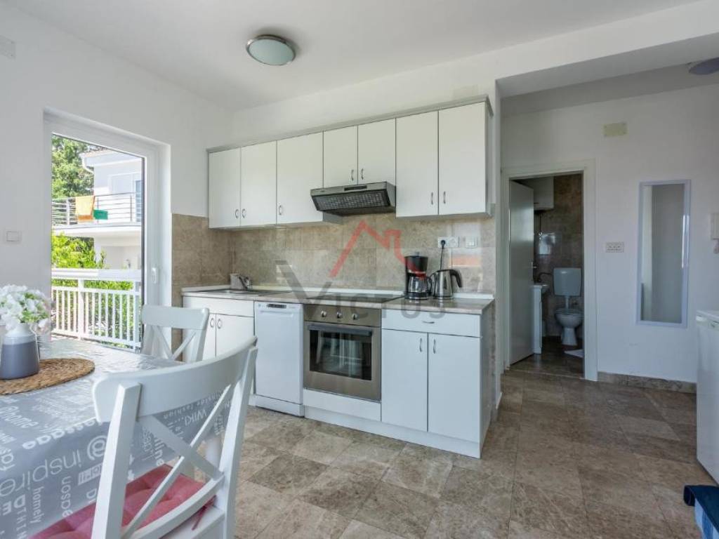 The house consists of a ground floor and 3 floors. On the ground floor there is an apartment with two bedrooms, on the first floor an apartment with three bedrooms, while on the second and third floors there are two studios and two one-bedroom apartments. All apartments on the upper floors have terraces with sea views. The house is sold fully equipped, and all apartments have kitchens and renovated bathrooms with washing machines.