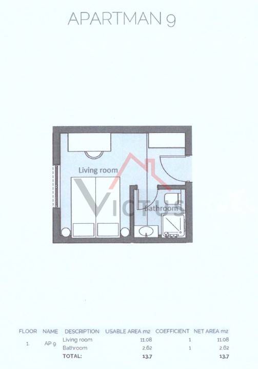 Several available apartments for sale within the building, with various sizes ranging from 14m2 to 30m2. The investor is VAT registered, so the future buyer is exempt from paying real estate transfer tax.