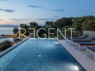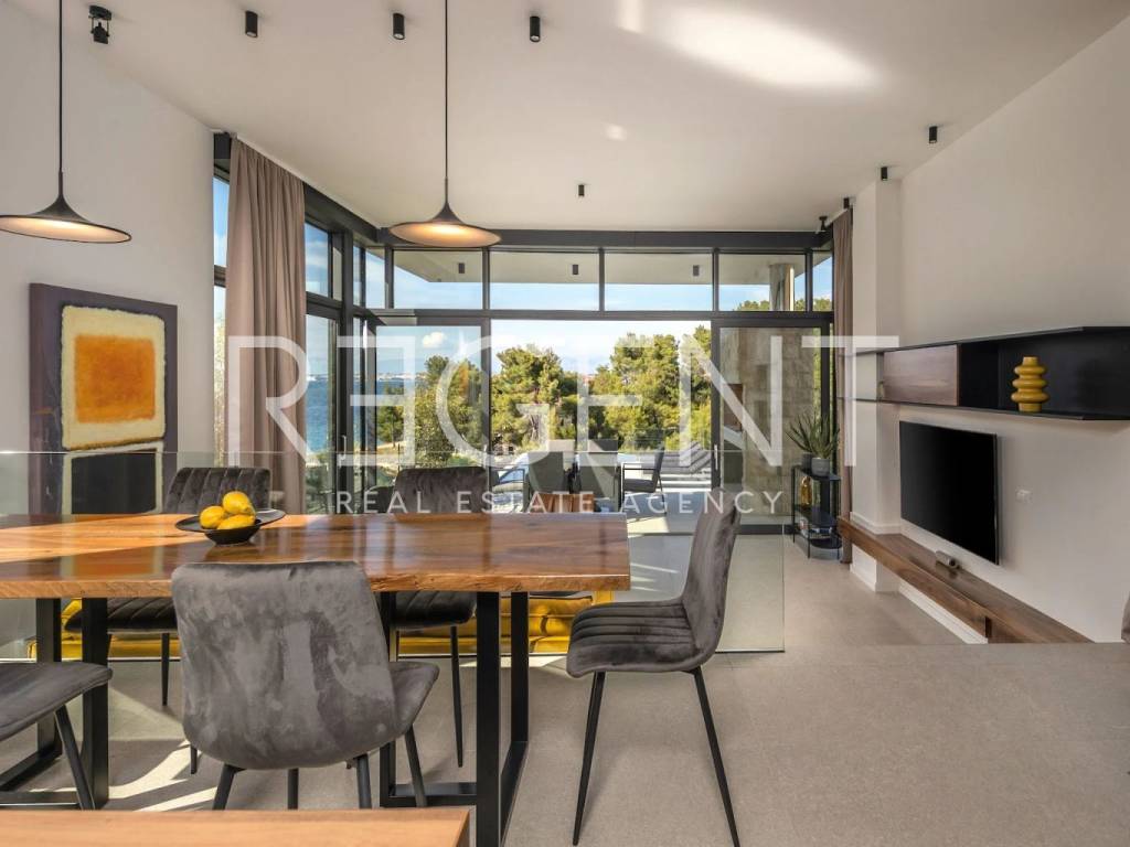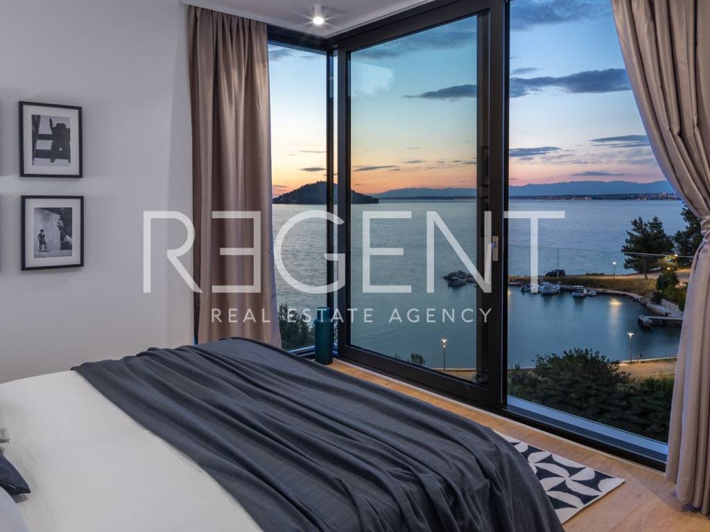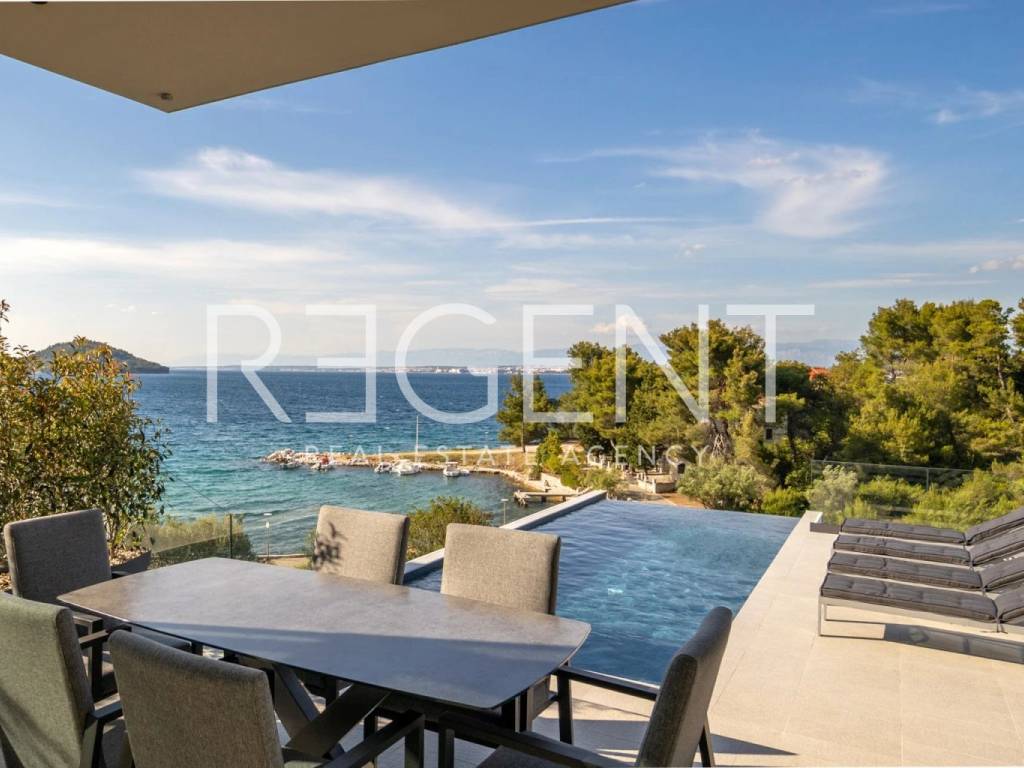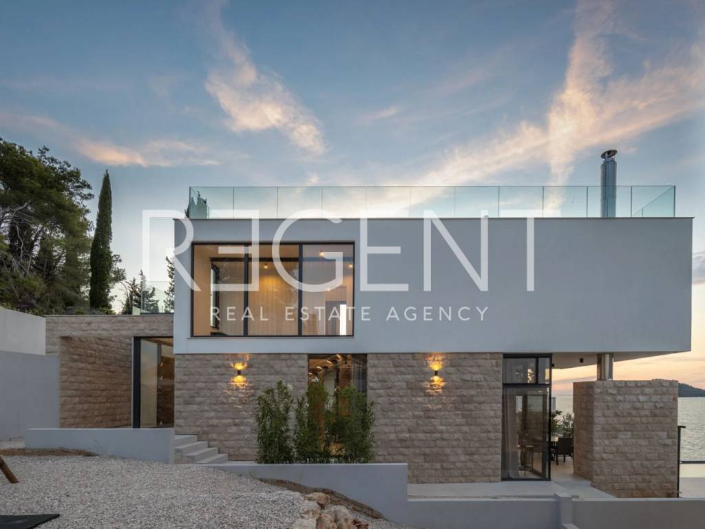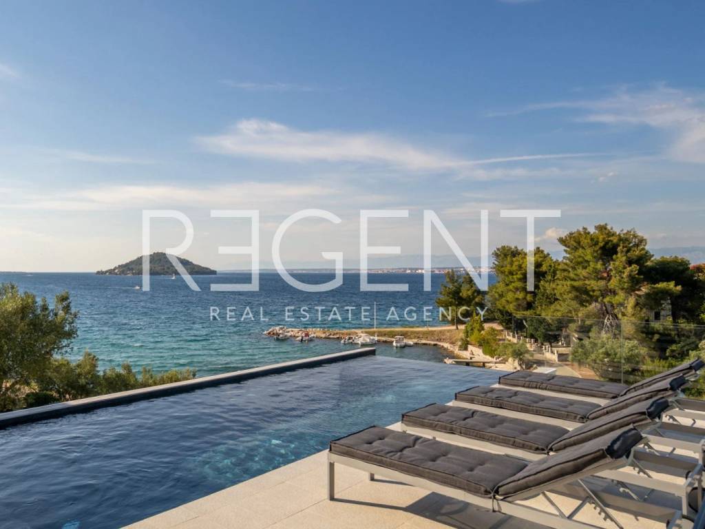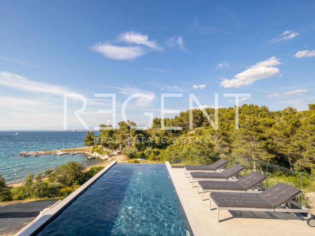 Attractive villa with a pool, first row to the sea, located on the island of Ugljan in Kali. The living area is 266 m², and the plot is 445 m² in size. The villa includes spacious terraces, a pool with a built-in heating and cooling system, and a central vacuum system. Built in a contemporary style, with a modern design and an open view of the sea, it offers superior comfort and privacy. Located above the driveway, it blends perfectly into the natural environment, ideal for lovers of minimalist design and natural light The villa consists of: Basement: Garage with two parking spaces, engine room and staircase. Ground floor: Spacious open space living room with dining room and kitchen, guest toilet, laundry room and access to the terrace with infinity pool. The terrace is only a few meters from the sea and offers a wonderful view of the sea, with a sunbathing area ideal for relaxation. First floor: Hallway, three luxurious bedrooms with private bathrooms (ensuite), glass walls and sea views. Roof terrace: Spacious terrace with glass fence that provides a magnificent panoramic view of the surrounding sea and nature. The garden is decorated with olive trees and illuminated steps, creating a special atmosphere during the night. The villa is fully air-conditioned, and ceramic tiles with underfloor heating further increase comfort. The outdoor area includes a 32 m² pool, a sunbathing area and numerous opportunities for relaxation, ideal for enjoying the Mediterranean atmosphere. The villa is located on the island of Ugljan, near the Kornati National Park and only a 30-minute boat ride from the city of Zadar, a historic city more than 3000 years old. Given its picturesque location by the sea, excellent connection to popular destinations and natural beauty, this villa represents an excellent investment opportunity, either as a luxury holiday home or as a rental property. For more information and to view this unique property, feel free to contact us!
