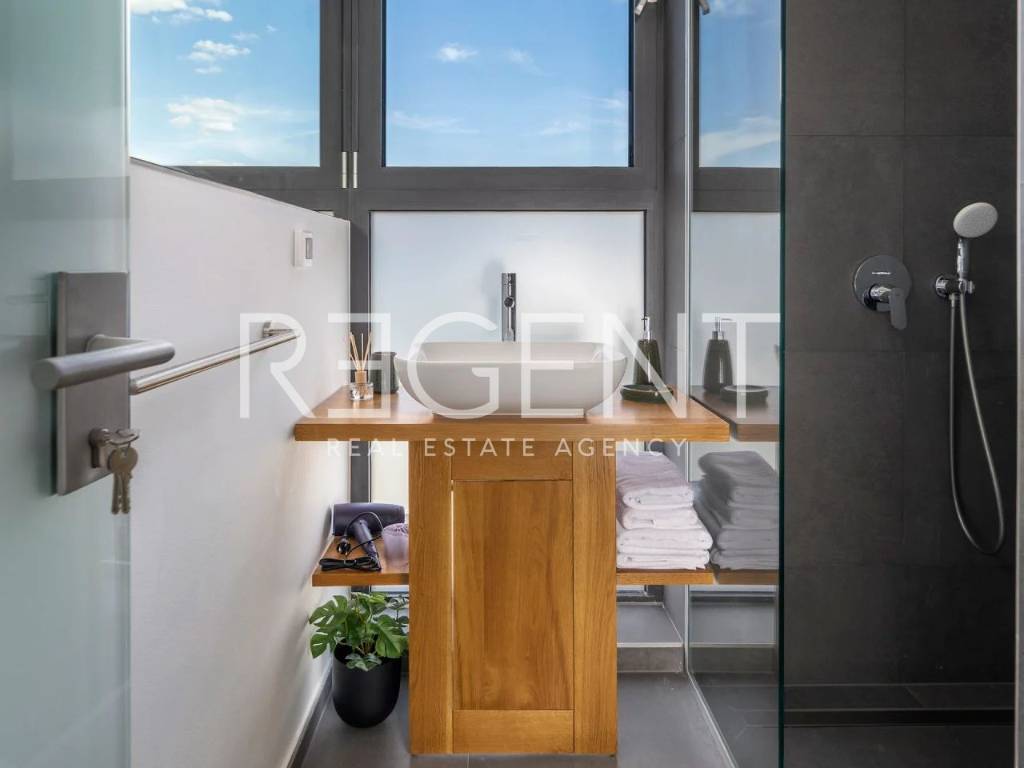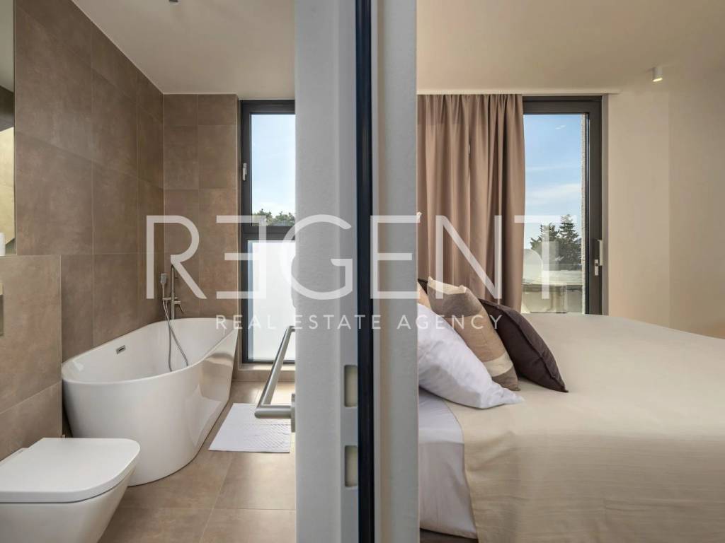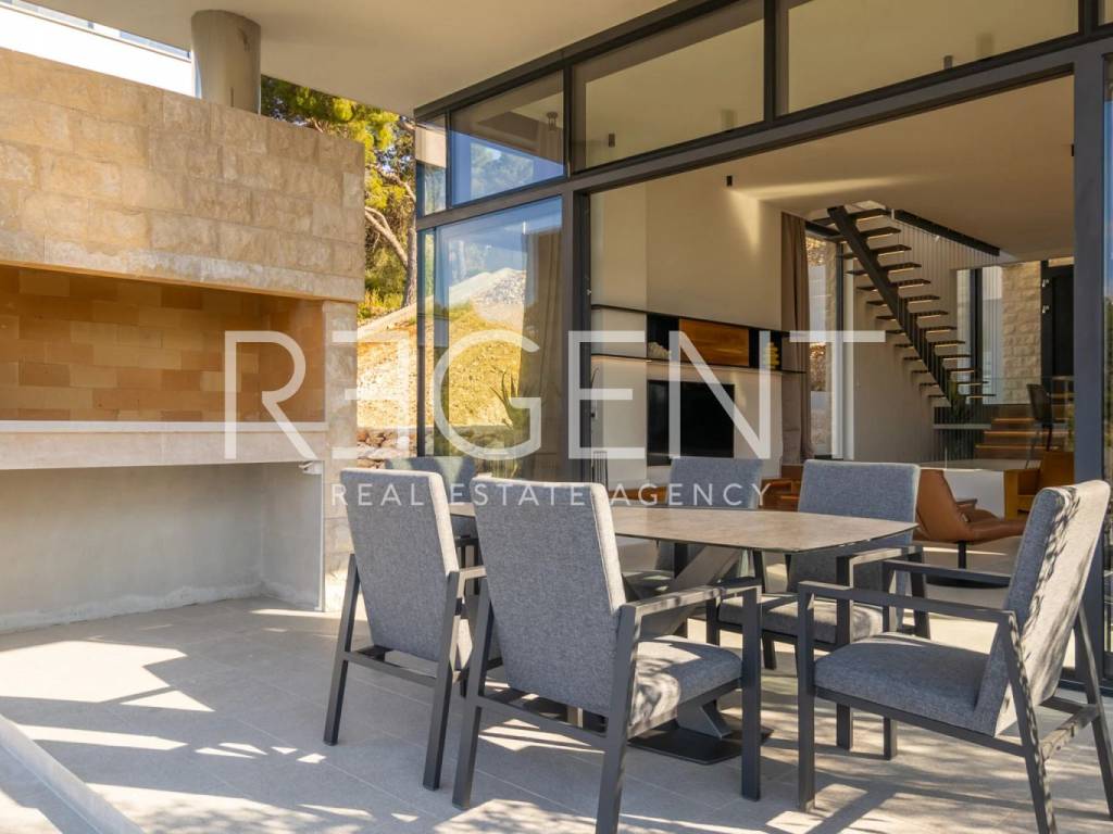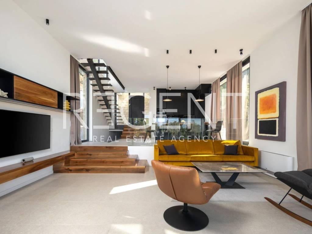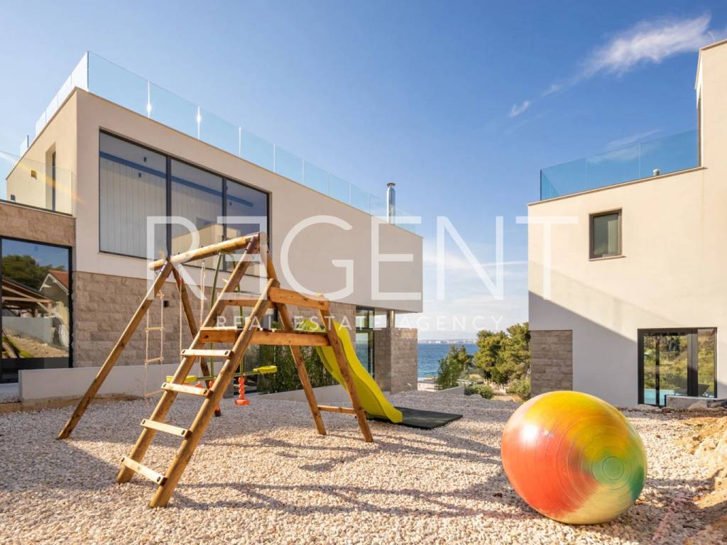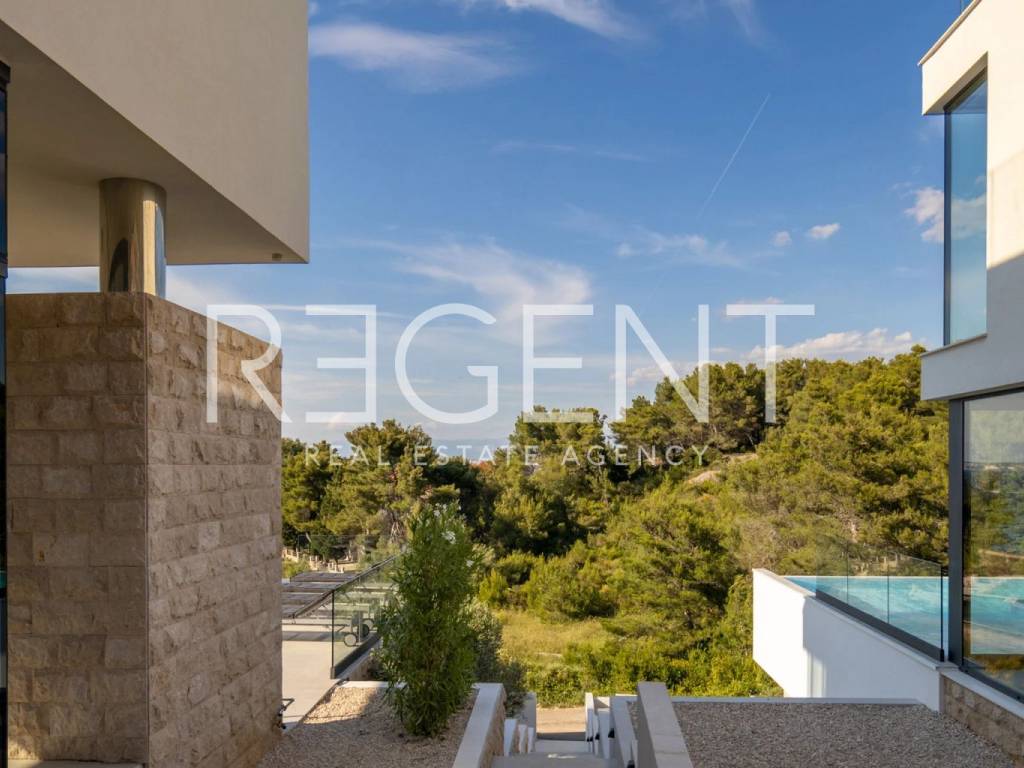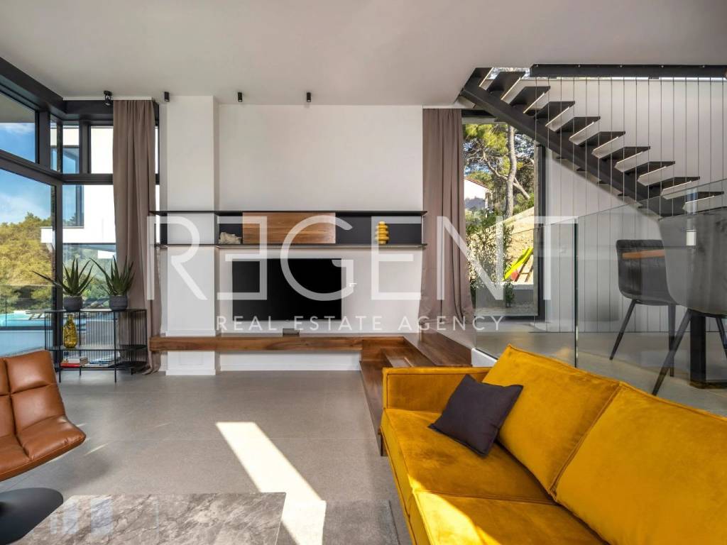 Attractive villa with a pool, first row to the sea, located on the island of Ugljan in Kali. The living area is 266 m², and the plot is 445 m² in size. The villa includes spacious terraces, a pool with a built-in heating and cooling system, and a central vacuum system. Built in a contemporary style, with a modern design and an open view of the sea, it offers superior comfort and privacy. Located above the driveway, it blends perfectly into the natural environment, ideal for lovers of minimalist design and natural light The villa consists of: Basement: Garage with two parking spaces, engine room and staircase. Ground floor: Spacious open space living room with dining room and kitchen, guest toilet, laundry room and access to the terrace with infinity pool. The terrace is only a few meters from the sea and offers a wonderful view of the sea, with a sunbathing area ideal for relaxation. First floor: Hallway, three luxurious bedrooms with private bathrooms (ensuite), glass walls and sea views. Roof terrace: Spacious terrace with glass fence that provides a magnificent panoramic view of the surrounding sea and nature. The garden is decorated with olive trees and illuminated steps, creating a special atmosphere during the night. The villa is fully air-conditioned, and ceramic tiles with underfloor heating further increase comfort. The outdoor area includes a 32 m² pool, a sunbathing area and numerous opportunities for relaxation, ideal for enjoying the Mediterranean atmosphere. The villa is located on the island of Ugljan, near the Kornati National Park and only a 30-minute boat ride from the city of Zadar, a historic city more than 3000 years old. Given its picturesque location by the sea, excellent connection to popular destinations and natural beauty, this villa represents an excellent investment opportunity, either as a luxury holiday home or as a rental property. For more information and to view this unique property, feel free to contact us!