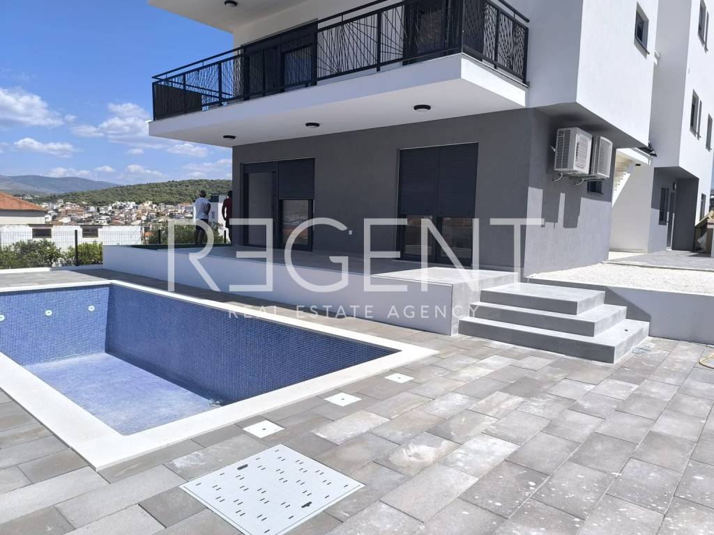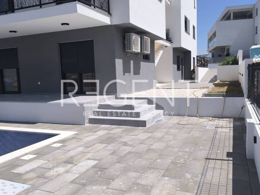 We mediate in the sale of a modern two-bedroom apartment with a private pool and a spacious terrace in a new building located in Okrug Gornji.The apartment is located on the ground floor and covers a total area of 55.60 m², while the terrace is an additional 17.40 m². This property is characterized by top quality construction and carefully selected materials, providing future owners with a comfortable and luxurious living space.The apartment consists of: hallway, two bedrooms, bathroom, kitchen, dining room and open-concept living room and a spacious terrace.High-quality materials were used in the construction, including modern carpentry with manual roller shutters in all rooms, while the living room has electric lifts for added convenience. The bathroom is equipped with top-quality wall tiles, and underfloor heating is installed in the hallway, bathroom and living room, which ensures additional comfort during the winter months. Air conditioners are installed in all rooms and the living room.A special advantage of this apartment is the spacious terrace and private pool, ideal for relaxing and enjoying the outdoors in the privacy of your own home.The apartment is located in an excellent location, close to all necessary amenities such as shops, restaurants, cafes and beaches, which makes it ideal for permanent residence or tourist rental.This property represents an excellent opportunity for those looking for a modern and comfortable way of life in a peaceful environment.For any additional information, feel free to contact us!