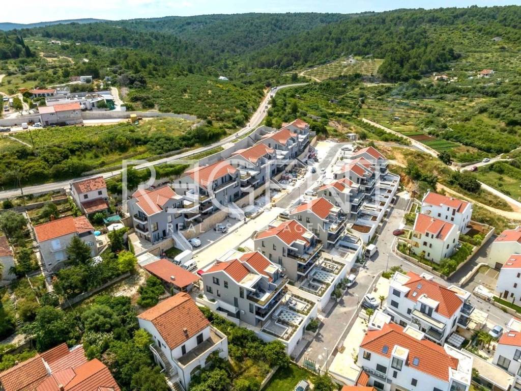 Experience the pinnacle of luxury living in a residential complex located in a newly built settlement in the charming town of Sutivan on the island of Brač. Beautiful luxury apartments with panoramic views that will leave you speechless, and allow you to immerse yourself in the beauty of the surrounding landscape and embrace the Mediterranean way of life. The apartments in the complex are sold with fully equipped bathrooms, installed floors and air conditioning. This two-room apartment on the ground floor of 97.56 m2 consists of two bedrooms, two bathrooms, a living room with kitchen and dining room. The open floor plan creates a spacious and inviting ambience, perfect for relaxing and entertaining. Embrace the beauty of indoor and outdoor living with direct access to a charming private garden, where you can immerse yourself in the serenity of nature and create your own oasis of peace. Enjoy a beautiful sea view from the covered terrace. The price includes a parking space. Collaboration is also possible regarding the equipment of the apartment, the possibilities are endless when it comes to personalizing this exceptional space. With an unfurnished interior, you are free to unleash your creativity and transform this apartment into your own private oasis. Let your imagination run wild as you choose every detail to reflect your unique style and preferences. Sutivan awaits you with its unusual charm and vibrant community. Stroll through the picturesque streets, indulge in local cuisine in charming cafes and restaurants, and immerse yourself in the rich history and culture that permeates every corner of this enchanting town.