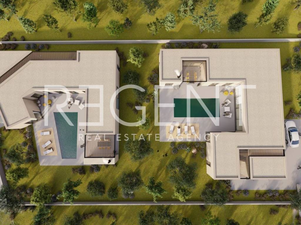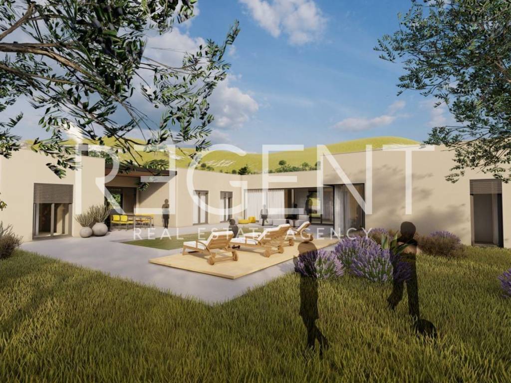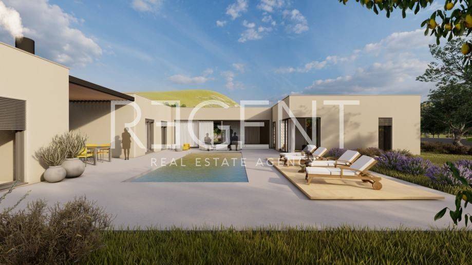 In a peaceful location, just a few minutes from the center of Šibenik, the construction of a modern ground-floor house with a swimming pool, sauna and garage is planned. The villa is designed as a perfect blend of comfort, functionality and elegance – ideal for family life, a luxurious vacation or a tourist investment. The villa with a total gross area of 290 m² is located on a spacious plot of 1,070 m². The enclosed part of the house is 193 m², with a garage of 21 m² and a swimming pool of 36 m². Inside there is: a spacious living room with a kitchen and dining room, three comfortable bedrooms, two bathrooms, an additional guest toilet, a wardrobe, a laundry room and a private sauna with a shower area. From the living area, you can access the covered terrace of 15.80 m² overlooking the garden and the pool. The fireplace in the living room further contributes to the atmosphere of warmth and relaxation. The garden also provides additional parking for four vehicles and enough space for landscaping, planting olives or creating a private relaxation corner. The building permit has been issued, and construction can begin after September 15, 2025. Buyers are offered the possibility of purchase in different stages – from the "roh-bau" state to the "turnkey" model with individual selection of finishing materials and equipment. There is also the possibility of investing in another identical villa on the neighboring plot. The location of the villa provides a perfect balance between peace and accessibility – the center of Šibenik, the sea and the A1 highway can be reached in just a 5-minute drive, while the Krka National Park is only 10 minutes away. Surrounded by nature, this position offers privacy and silence, while at the same time allowing quick and easy access to all key facilities. For more information, as well as an appointment for a viewing, feel free to contact us!
