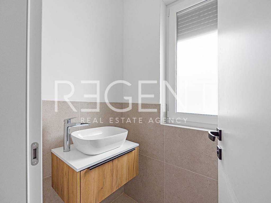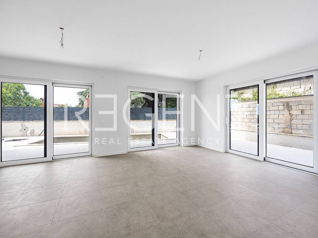 Exclusive modern residential building is located in Tar, near Poreč in Istria, and consists of a total of four apartments. Each apartment is equipped with high-quality modern equipment including underfloor heating, aluminum windows and electric shutters. Exclusive two-story apartment without furniture, spreads over an impressive 181 square meters on two floors. The ground floor of the apartment impresses with a spacious living room with large glass walls that allow plenty of natural light and create an atmosphere of spaciousness. The open-plan kitchen is equipped with high-quality materials. Large glass doors lead to a private yard of 109 square meters, where a swimming pool stands out - an ideal space for relaxation and entertainment. On the upper floor, there are two spacious bedrooms with access to a balcony providing privacy and comfort, while each room has its own bathroom. This property is located only 300 meters from the sea, which allows quick and easy access to the beach. The panoramic sea view further enriches the experience of staying in this home. Whether you are inside the apartment or relaxing on the sunny terrace. This two-story property represents an opportunity to personalize the space according to your own preferences and lifestyle. With a combination of modern design, comfort and a peaceful environment, this is the perfect place for those who appreciate quality living space on the coast. Contact us for more information!