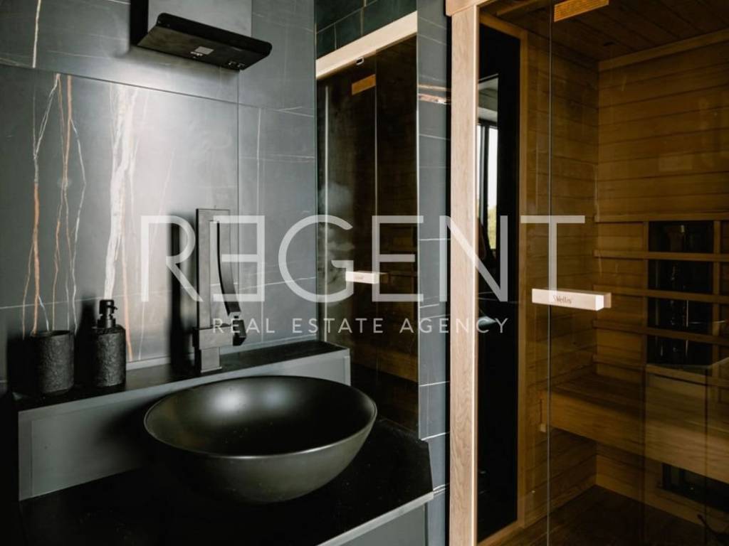 This beautiful villa is located in a quiet place not far from Šibenik, perfect for relaxing away from the hustle and bustle of the city. It covers an area of 200m² on a plot of land of 400m². The villa is only a few minutes away from the beach, and due to its location, it offers its residents privacy and peace. It consists of a first floor and a ground floor. It consists of 4 bedrooms, 3 bathrooms and an additional toilet, a spacious living room, a large kitchen with a dining room, a hallway, a pantry, two balconies and a large terrace where you can enjoy swimming in the spacious pool. Each room is fully equipped and modernly decorated. It also offers a sauna service built in a classic Scandinavian style, ideal for relaxing during cold days. It also contains two parking spaces in the garden. What makes this villa special is the modern design that fits perfectly into the ambience of the surroundings. The charm of its aesthetics is a combination of dark and light tones that blend perfectly with wooden details, and the abundance of greenery will give you a sense of peace and relax your mind and body. Due to its rich offer and location, the villa is ideal for tourism, but also for special moments spent on vacation with the family.