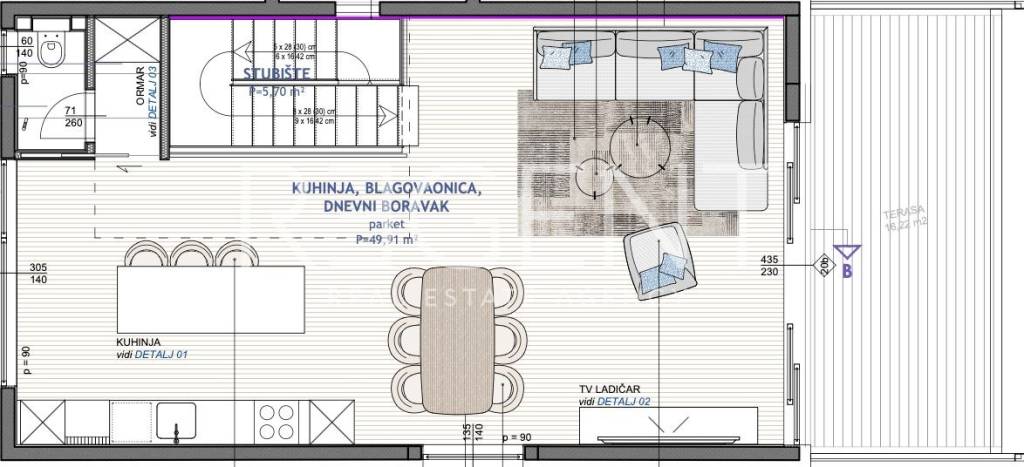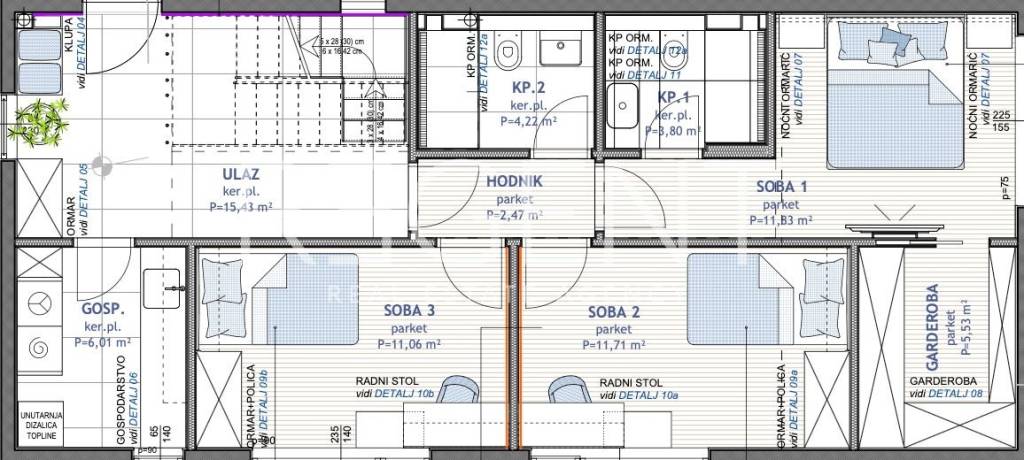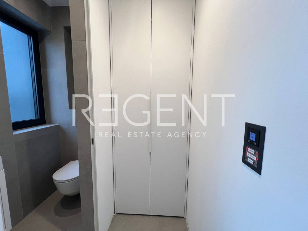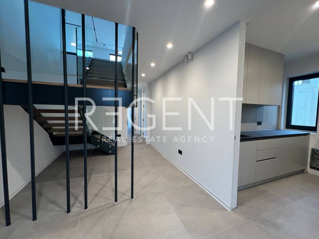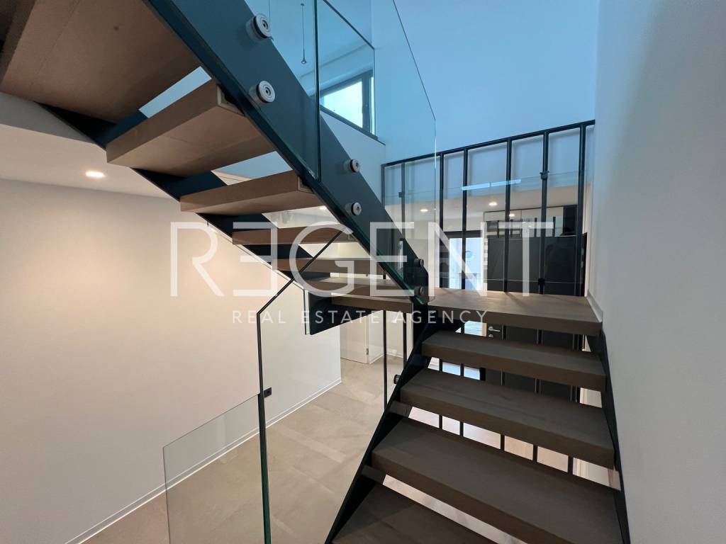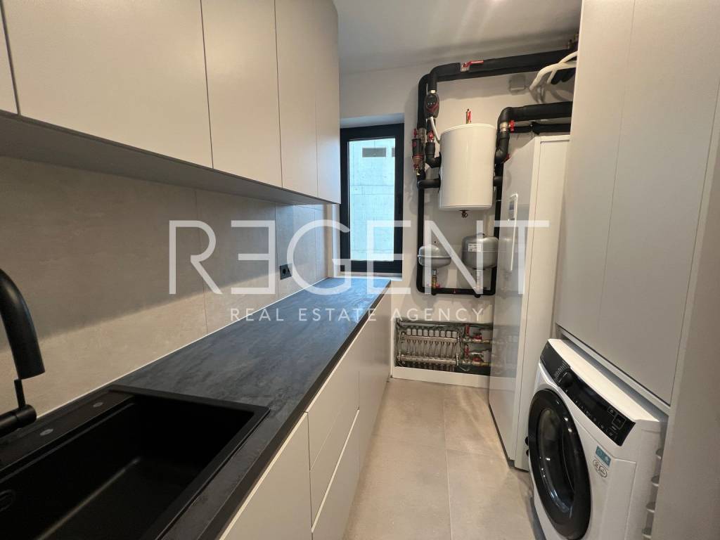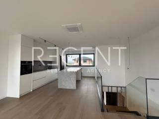The Penthouse on Pantovčak spans two floors with a total gross area of 131.68 m² and includes a large terrace of 15 m² and two garage parking spaces. The apartment is located in a modern new building with top-of-the-line equipment and the possibility of furnishing by agreement. On the first floor, there are three bedrooms, the master bedroom having its own bathroom and walk-in closet, an additional bathroom, and a laundry room. On the second floor, there is a spacious open space living area that combines a kitchen, dining room, and living room with access to a large terrace. In addition, there is a guest WC with storage. The apartment is equipped with air conditioning in every room, heating via a heat pump, and an advanced smart home system. Associated rooms and parking: the apartment comes with two garage parking spaces Utilities and deposit: utilities are paid separately, and the deposit is one month's rent. Location: The property is located in a quiet and prestigious location on Pantovčak, in the immediate vicinity of the city center, top schools, kindergartens, and all necessary amenities. The location provides peace, privacy, and excellent connectivity with the rest of the city.