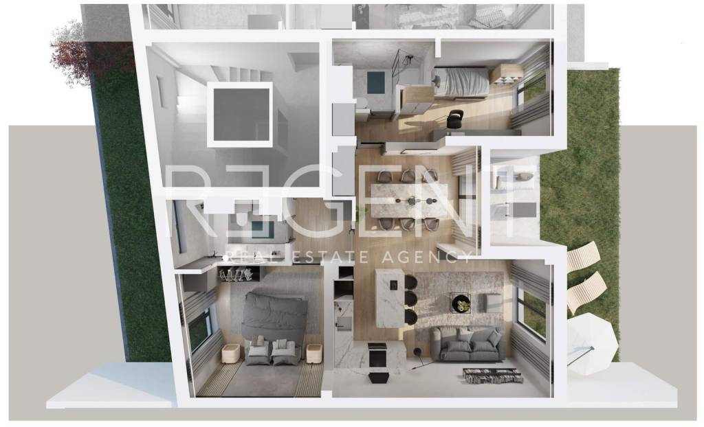 Apartments for sale in a new building of an exclusive residential building, located in a very desirable micro-location in Zagreb, in a quiet and green environment. The apartment consists of an entrance hall, 2 bedrooms, 2 bathrooms, an open space living room and dining room, a balcony of 6.80 m² and 2 gardens (25.20 m² + 27.40 m2). It is located on the 1st floor of the building with a beautiful view of the park. The apartment also has a parking space in the garage, which is located on the ground floor of the building. The orientation of the apartment is north-south. This modern property offers top-quality living in the immediate vicinity of the city center. The building extends over three floors and includes an underground garage with associated storage rooms and connections for charging electric vehicles, as well as outdoor parking spaces. A total of five luxury apartments were designed according to the highest standards of modern architecture and equipment. Equipment: Only the highest quality materials were used in the construction - anti-burglary doors, aluminum carpentry with three-layer IZO glass, parquet and top-quality sanitary equipment. Security and comfort are further ensured by a smart home system that enables intelligent control of lighting and other apartment functions. The entrance to the garage is equipped with a camera with a license plate recognition system, while horticulturally decorated green areas will complete the impression of this property.The location offers the perfect combination of a quiet environment and proximity to all necessary amenities. Kvaternikov trg and Ban Jelačić Square are easily accessible, and bus and tram stations, kindergartens, four elementary schools and the prestigious XV. gymnasium. Available apartments: S1 – Closed part: 73.56 m² + balcony: 7.10 m² + garden: 25.20 m² + garage space S2 – Closed part: 73.56 m² + balcony: 6.80 m² + garden 1: 25.20 m² + garden 2: 27.40 m2 + garage space S3 – Closed part: 73.50 m² + balcony: 7.80 m² + garage space S4 – Closed part: 72.50 m² + loggia: 7.71 m² + garden: 47.60 m² + garage space S5 (Penthouse) – Closed part: 112.54 m² + terrace: 60.27 m² + garage space This is a unique opportunity to buy a luxury property in one of the most desirable city districts. For all other information, feel free to contact us!