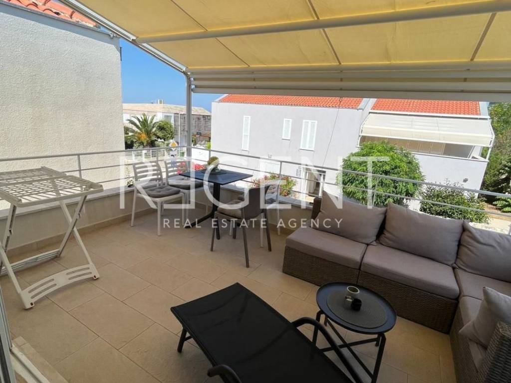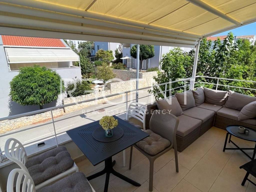 On the first floor of a building in Petrčane, within the prestigious Sunnyside Resort, a one-room apartment with an area of 48 m2 is for sale. Petrčane is one of the most attractive tourist destinations in the Zadar County, and in the immediate vicinity is the exclusive resort Falkensteiner Hotel and Spa Iadera. The apartment consists of: Entrance hall (2.82 m²) Bathroom (3.76 m²) Kitchen (5.45 m²) Living room and dining room (21.56 m²) Bedroom (8.99 m²) Terrace (13.29 m²) Parking space (13.60 m²) The apartment is located in the second row from the sea, ideal for lovers of peace, but in the immediate vicinity of all tourist facilities. Sunnyside Resort is a closed settlement with a beach concession, and apartment owners have free access to the beach. In addition, they can use the swimming pool, sauna and fitness center within the complex. There is also the possibility of renting an apartment through Sunnyside when the owners are not using it, which is a great opportunity for additional income. This property is ideal for those who want to enjoy untouched nature, peace and privacy. For more information, feel free to contact us.