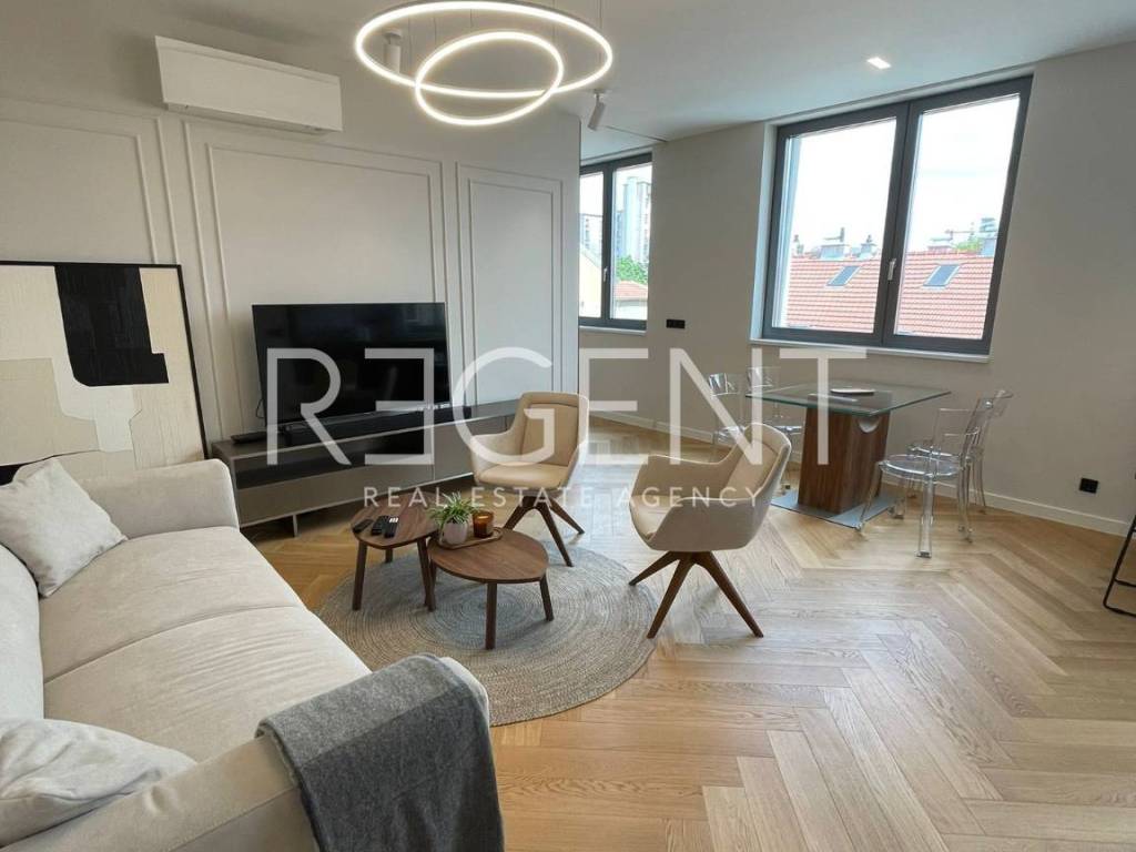The apartment with an area of 81.27 m² is located on the 4th floor of a modern residential building with an elevator, and is available from September 1st. It is east-facing, superbly and luxuriously furnished, and equipped with the latest systems. It consists of an entrance area (6.63 m²), a spacious kitchen with living room (28.17 m²), two bedrooms (16.44 m² and 15.67 m²), two bathrooms (6.64 m² and 3.54 m²) and an additional toilet (1.90 m²) and a pantry (2.28 m²). The apartment has underfloor heating by zones, a smart house system, electric blinds, aluminum/wood joinery and air conditioning. The rental price includes a garage parking space of 14 m² with an electric charger. The building has an elevator and the apartment is available from September 1, 2025. It is located in Medulićeva Street, in the immediate vicinity of Britanski Trg (British Square) and all necessary amenities, shops, restaurants, market, public transport, schools and other conveniences. Excellent traffic connections, which allows quick access to the city center and main roads. For more information, feel free to contact us!