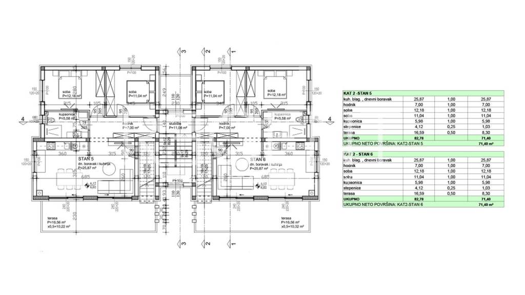 A three-room apartment with a surface area of 88.60 m², located on the second floor of a modern residential building in Sukošan near Zadar. The apartment is located in a quiet location, just a few minutes' walk from the sea and all important amenities. It consists of a hallway, two bedrooms, a bathroom, a kitchen, and a living room with access to a terrace. The apartment also has its own staircase leading to a separate roof terrace with a total area of 68.81 m² and an outdoor parking space. The apartment will be equipped with top-quality materials and equipment: • Reinforced concrete construction, brick walls • High-quality wood-aluminum carpentry • Italian porcelain tiles of 1st class (Marazzi/Mirage) • Oak parquet in the bedrooms • Underfloor heating in the bathroom and living room • Mitsubishi multi-split air conditioning system • Stone in the staircase and at the entrance to the building • Villeroy & Boch sanitary ware • Parking space paved with concrete blocks • Landscaped gardens and horticulturally designed surroundings • Anti-theft entrance door The building is currently under construction, and the completion of works is planned by January 2026. This property is an excellent opportunity for family life, but also as an investment for tourist rental. For more information or to arrange a viewing, feel free to contact us.