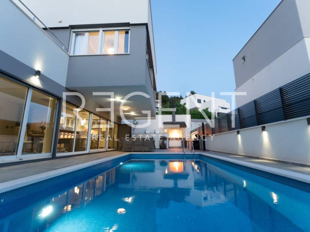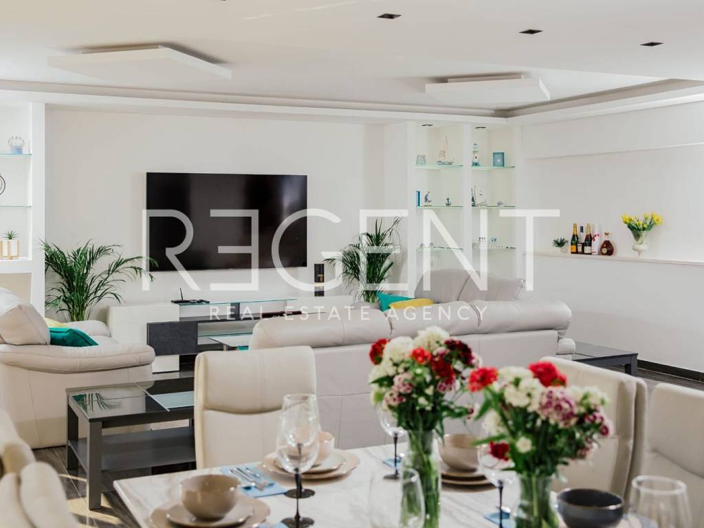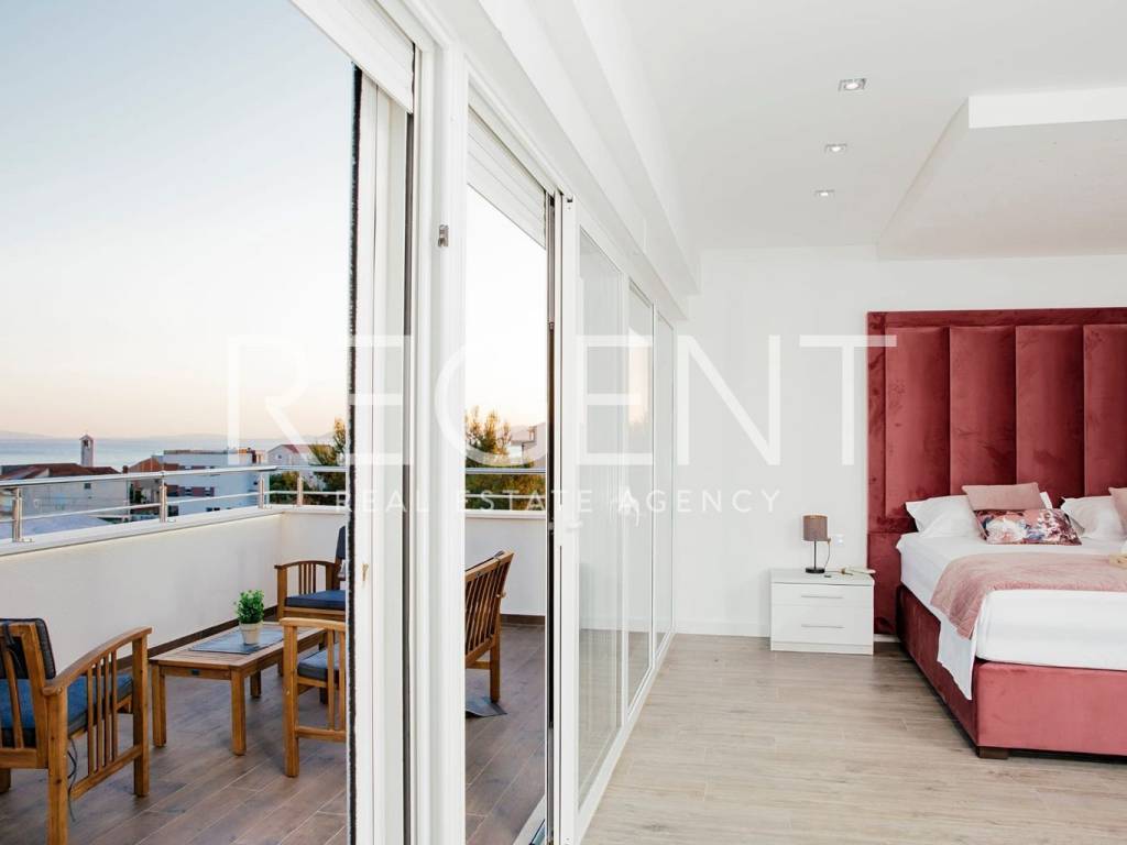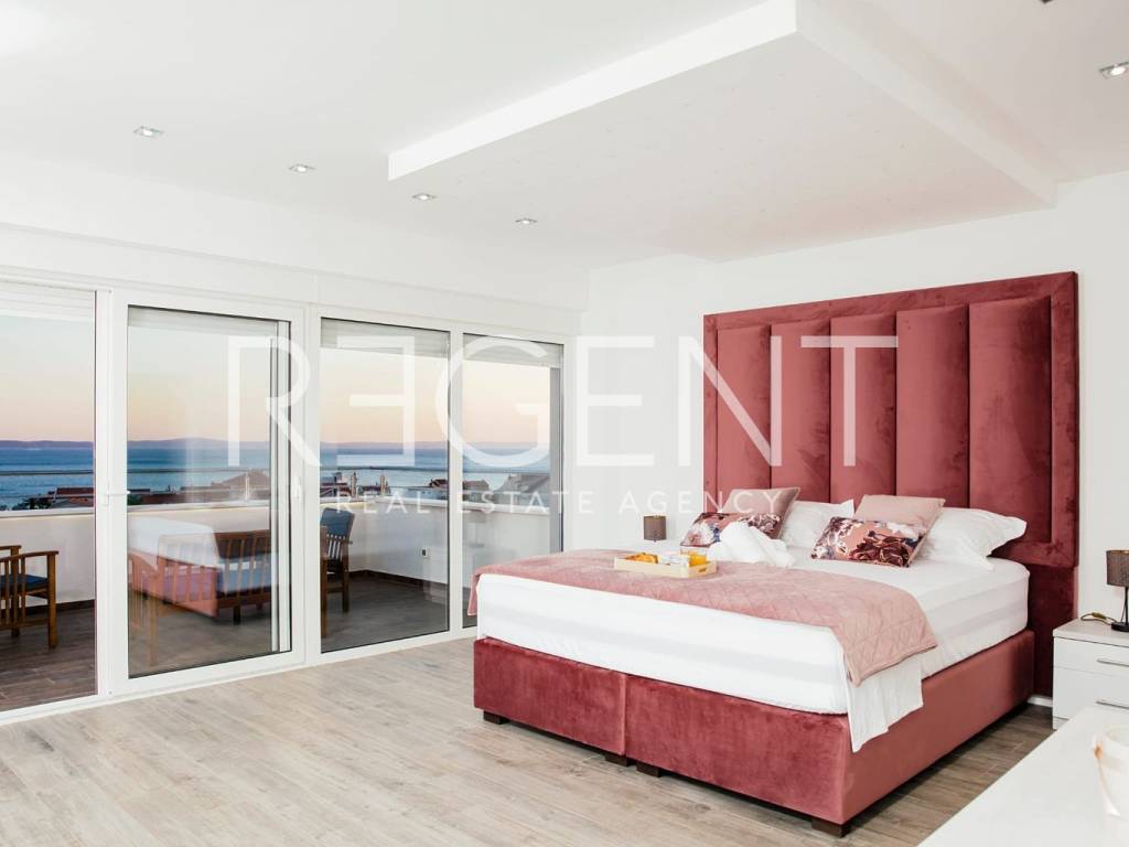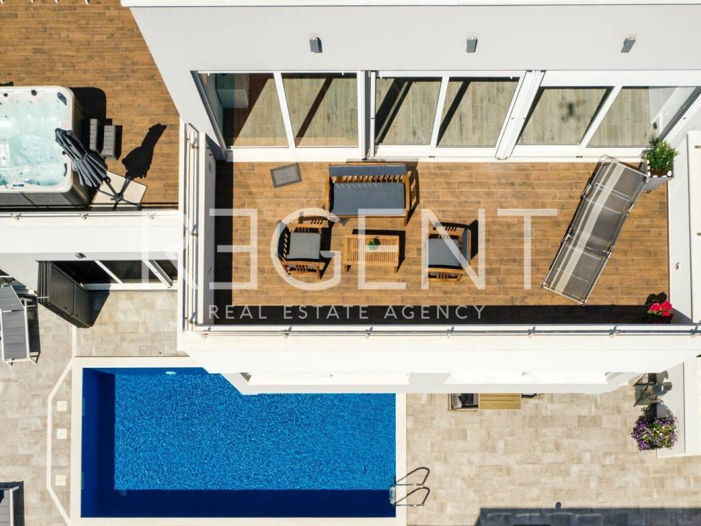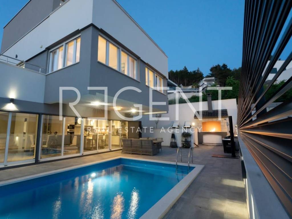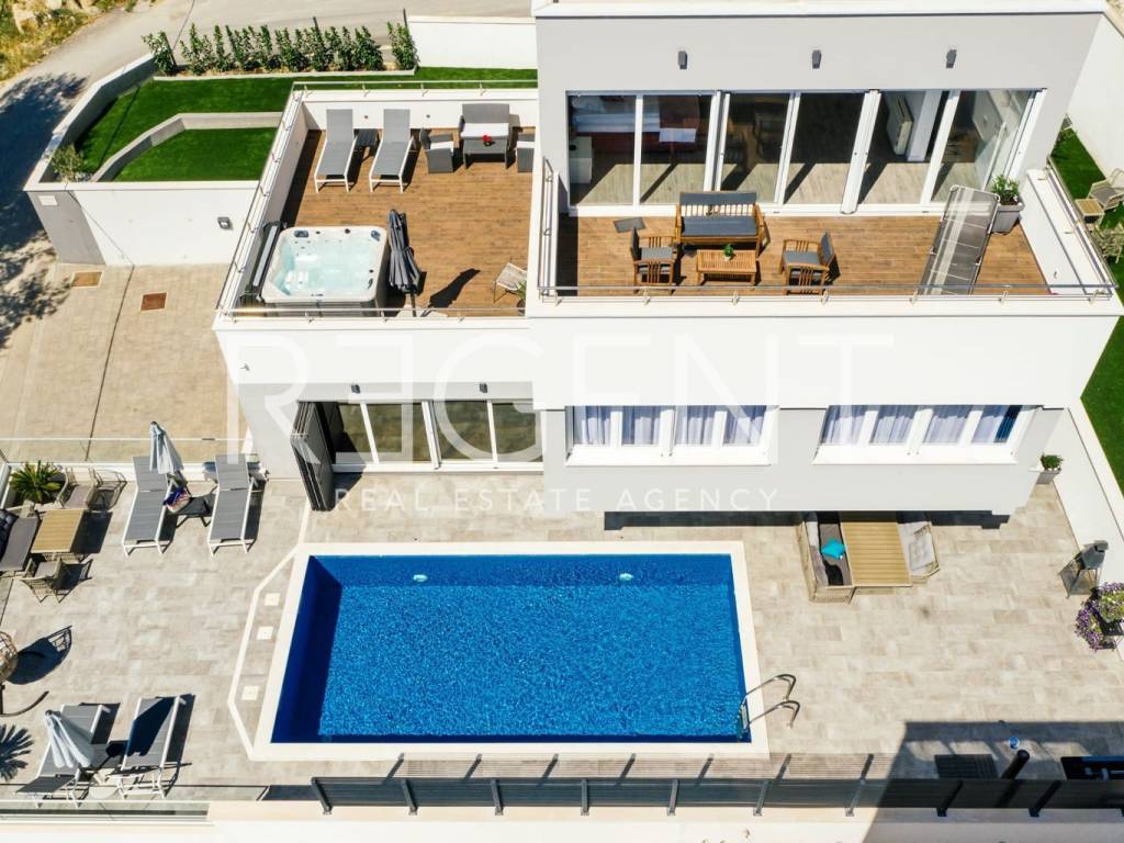 Near Split, in the picturesque surroundings of Podstrana, lies a charming villa that offers a perfect blend of elegance and comfort, creating an ideal haven for relaxation and enjoyment. This spacious two-story villa with a beautiful terrace offers incredible sea views and creates a unique sense of peace and luxury. Upon entering the yard, you will be greeted by a yard that invites you to enjoy the sun. Also, in the outdoor space there is a private pool and sunbathing area that allow you to perfectly relax under the Dalmatian sun, and a spacious outdoor dining area and barbecue with equipment are ideal for meals under the open sky. The modern garden around the villa contributes to the feeling of peace and privacy. The villa is equipped with all modern amenities to make your stay unforgettable. The air-conditioned interior provides a pleasant atmosphere throughout the year, while WiFi and private parking further facilitate your stay. The villa consists of four elegantly decorated bedrooms and three bathrooms with shower. On the ground floor there is a spacious living room that makes a comfortable space for socializing and relaxing, and a fully equipped kitchen with dishwasher and oven meets all culinary desires. This villa also offers special amenities such as a jacuzzi on the balcony for complete relaxation and a gym to maintain fitness. Podstrana and the surrounding areas offer a variety of activities, from diving in the crystal clear sea to fishing and hiking along natural trails. This villa represents an irresistible opportunity to experience luxurious living with a true Mediterranean atmosphere.