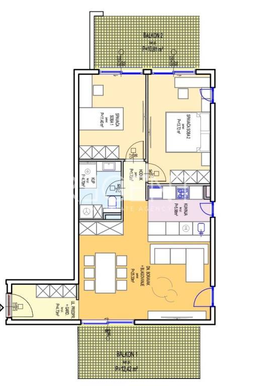 A two-room apartment is for sale, located on the 1st floor of a modern building within the Sunny Cliff Residence project, just a few steps from the sea. This apartment is characterized by an excellent layout, a larger living area, and two balconies, making it an ideal choice for couples, smaller families, or as a smart investment for tourist rental. The apartment consists of an entrance area with a wardrobe, a living room with a dining area, a kitchen, a hallway, a bathroom, and two bedrooms. The total closed area is 67.61 m². The apartment also has two covered balconies with an area of 12.42 m² and 10.81 m², an additional 11.62 m² calculated, which gives a total of 79.23 m² of area. The project includes Mediterranean-landscaped green areas and a children's park, while the building itself has an elevator, triple-layer joinery, a ventilation system, heat pumps, and underfloor heating in the bathrooms. The predicted energy class is of the highest standard. The completion of construction is planned by the end of 2026. The possibility of purchasing a garage parking space with an additional payment of €30,000. Purchase is possible via credit or by payment in construction phases. For more information and to arrange a viewing, feel free to contact us!
