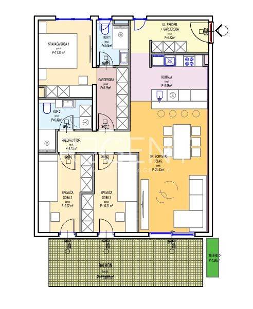 A three-room apartment is on offer, located on the 2nd floor of a residential building within the Sunny Cliff Residence project. The apartment consists of an entrance area with a wardrobe, a kitchen, a dining room and a living room, three bedrooms, two bathrooms, and an additional hallway and a separate wardrobe. The total closed area of the apartment is 91.40 m². The apartment has a covered balcony of 17.36 m² and a green area of 1.60 m². The total calculated area of the apartment is 100.40 m². The project includes Mediterranean horticulture, a children's park, and additional communal facilities. The building will be equipped with an elevator, triple-layer carpentry, heat pumps, a ventilation system, and underfloor heating in the bathrooms. The energy class is planned to be according to the highest standards. The completion of construction is expected by the end of 2026. A parking space is provided in the garage for €30,000. Purchase is possible through a loan or payment in construction phases. For more information and to arrange a viewing, feel free to contact us!