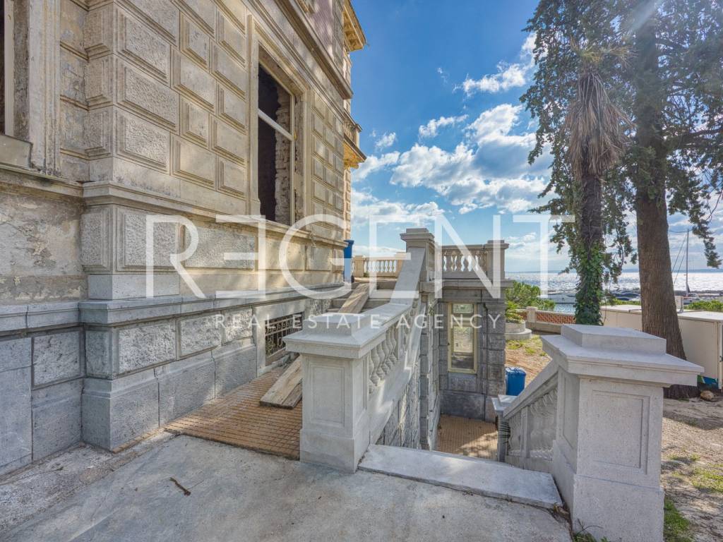 Villa Münz, located in the heart of Ičići on the Opatija Riviera, is a historic residence from the Austro-Hungarian aristocracy period. Preserved in its original form and surrounded by a park-forest, the villa presents a unique opportunity for investors and lovers of cultural heritage who are looking for a combination of historical elegance and modern life by the sea. The villa extends over three floors - basement, ground floor, and first floor - with a total living area of approximately 413 m², while an additional annex building covers 112 m². It is surrounded by a spacious courtyard and a park with an area of 4,421 m², which creates an intimate space for rest and recreation. The total land area is 4,946 m², of which 2,839 m² is intended for residential development. The renovation project envisages the retention of authentic architectural elements and the introduction of contemporary solutions, with the possibility of realizing several concepts - from a luxurious private residence, through an exclusive residential project with several units, to a boutique hotel. The architectural whole exudes historical charm: high ceilings, terraces overlooking the Kvarner Bay, and original details testify to the time when Opatija was an elite destination for European aristocracy. Located right next to the famous Lungomare promenade that connects Lovran and Volosko, Villa Münz occupies one of the most prestigious locations on the entire Opatija Riviera. Ičići is known for its well-maintained beach, marina, and peaceful atmosphere, and in the immediate vicinity are Opatija and the Učka Nature Park. Rijeka is only a 15-minute drive away, while Rijeka, Zagreb, Ljubljana, and Trieste airports are easily accessible within two to three hours. Perfect traffic connections, the proximity of the sea, and a rich cultural tradition make this location unique for living and investment. Villa Münz represents a rare opportunity to renovate one of the most famous historical villas on the Opatija Riviera. For additional information, feel free to contact us.