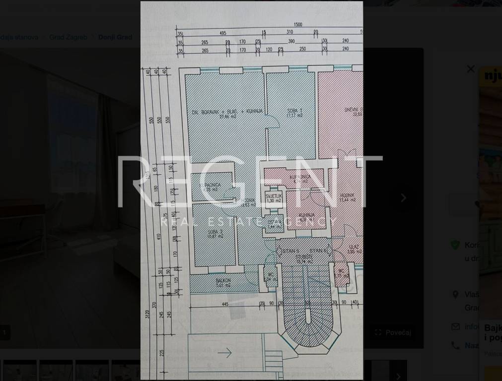 This three-room apartment is located on the second floor of a smaller building in Donji Grad, in an excellent location suitable for everyday city life. Due to its position and layout, it is ideal for families, couples or anyone who wants to live in the city center. The apartment has a total of 92.70 m2, of which the closed area is 75.39 m2. It consists of two bedrooms, an open space living room with a kitchen and dining room, a bathroom, a toilet, a hallway, a storage room and a balcony. The apartment also comes with two storage rooms – one in the basement and another in the attic. It was renovated in 2017, when all installations were replaced, new ALU carpentry was installed and the load-bearing walls were structurally reinforced. It is equipped with a kitchen with appliances, a dishwasher and washing machine, a TV, air conditioning, central gas heating and security doors. The north-south orientation ensures good lighting during the day. The apartment is located in the central part of Donji Grad, in the immediate vicinity of shops, schools, kindergartens, public transport and all important city facilities. The building is well-maintained; this year the roof was reconstructed with new insulation, and the staircase was completely structurally renovated. For additional information or to arrange a viewing, please feel free to contact us.