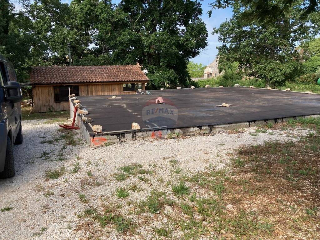 Temelji za kuću su već izgrađeni a u dozvoli je i pomoćni objekt od 35 m2 bruto površine s plaćenim priključkom struje u cijeni.