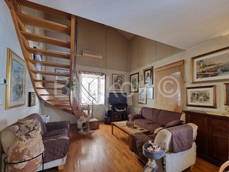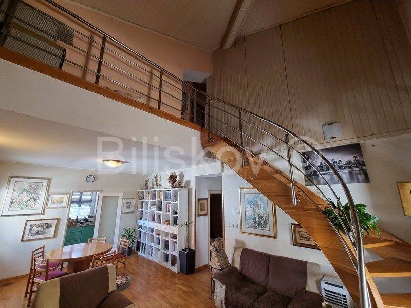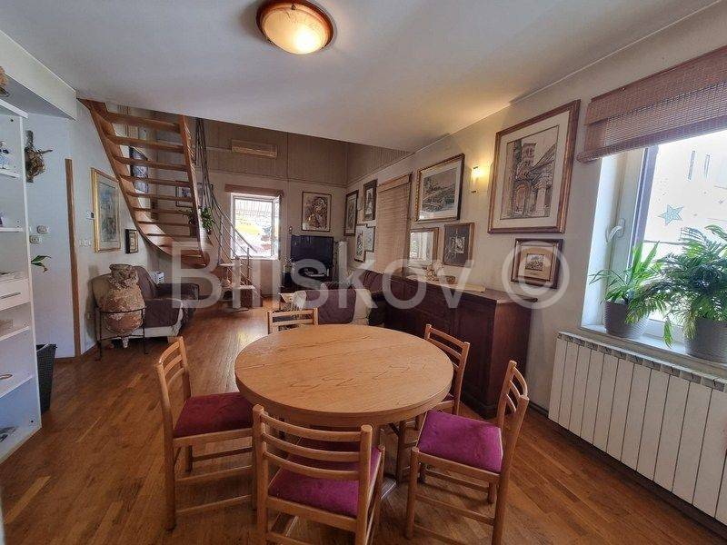 The first floor has a floor area of approximately 70 m2, and consists of a room, kitchen, living room and toilet. On this floor there is also a spacious terrace of 40 m2.On the upper floor there are two bedrooms and a bathroom. The upper floor has the same floor area, but a smaller area due to the sloping roof.The apartment is located in an extremely good location, in the very center of the city, so it is attractive both for living and for the possibility of tourist rental.