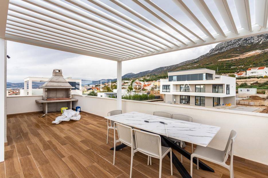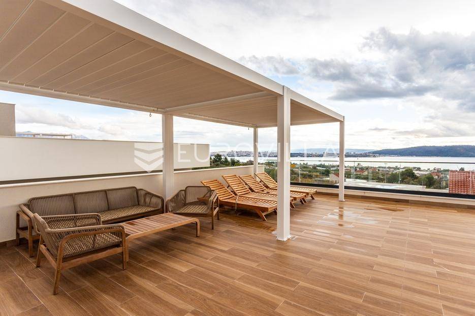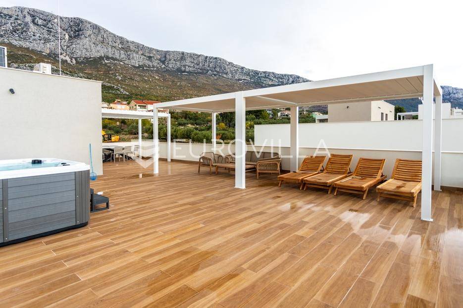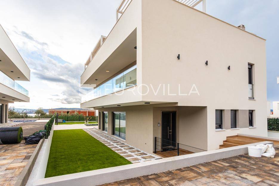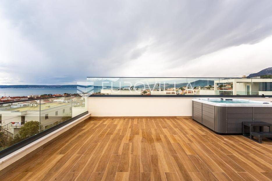 Položena na parceli površine 550 m2, u novoizgrađenom naselju luksuznih vila, na putu od Splita prema zračnoj luci.Razvedena je u tri etaže.