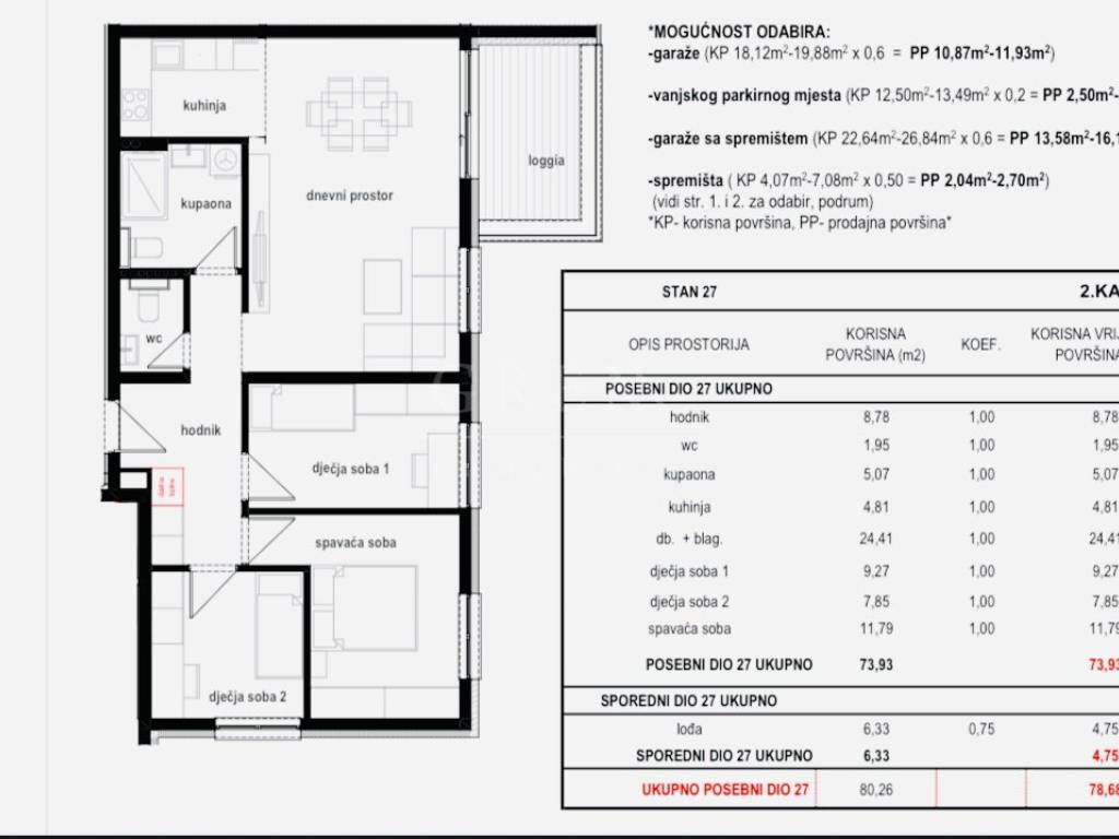 Opis stana (neto 78,68m2,/ 80,26m2 bruto) 2 kat