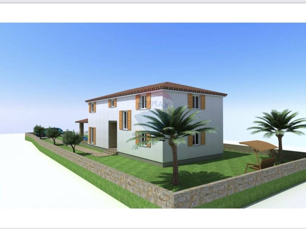 Zemljište je veliko 784m2 a projekt za izgradnju kuće od 257m2 bruto površine. Priključci za struju i vodu nalaze se na zemljištu.
