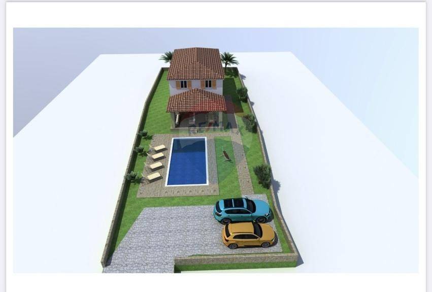 Projekt je obiteljska kuća ili kuća za odmor, prizemlje + kat s bazenom. 4 spavaće sobe, 4 kupatila,1 toalet, ostava, velika terasa...