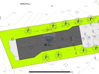 Na zemljištu se nalaze zasadjena stabla voćaka i po samoj granici parcele prema susjedu niz borova koji stvaraju privatnu atmosferu.