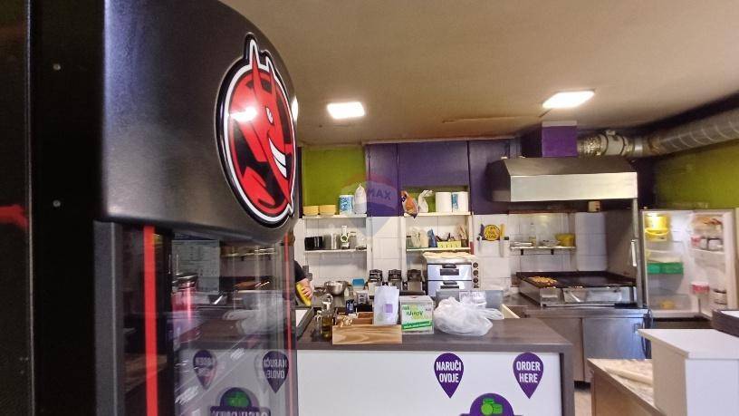 The ground floor (approx. 45 m2 net area) and the basement (approx. 30m2) are used as a business space (currently a fast food) which also has its own toilet and storage space in the basement.