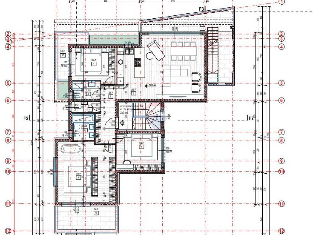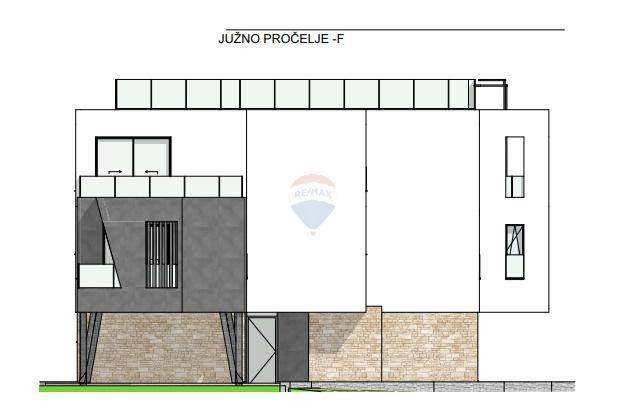 - **Prizemlje**: Apartman površine 80 m² sa okućnicom, bazenom i dva parkirna mjesta.