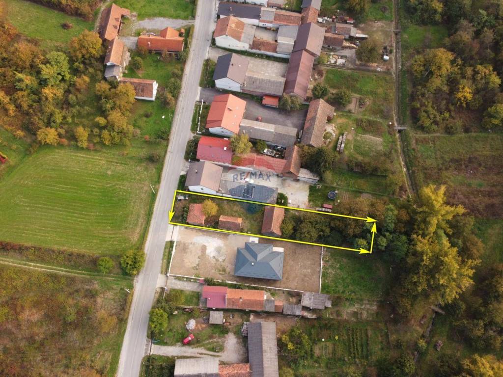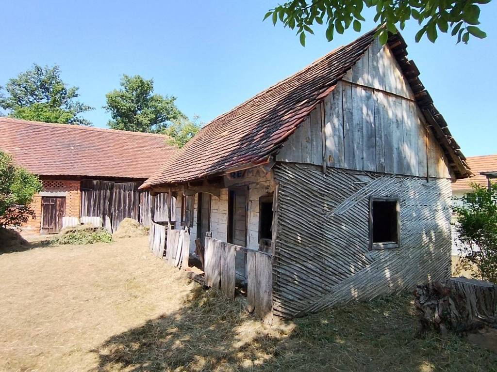 Na lokaciji je stara drvena kuća, zidana kuća i gospodarska zgrada. Do parcele su svi priključci (voda, struja, plin).