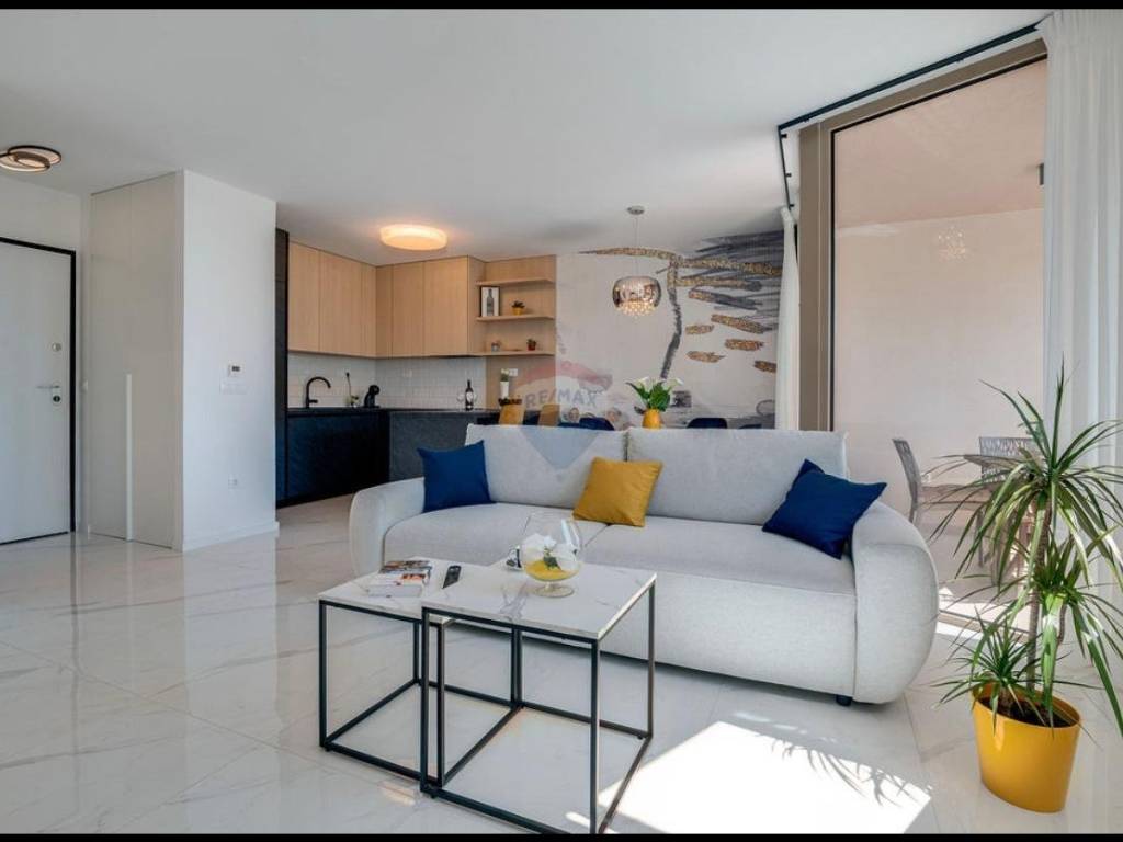 The apartment is new and never used (first rental), has 58.78 m2, and consists of: 2 bedrooms, living room with kitchen and dining area, bathroom, hallway and covered balcony with sea view.