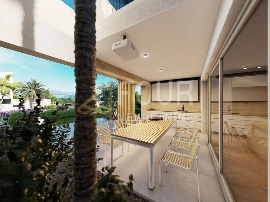 The villa is equipped with Daikin air conditioning units, underfloor heating and aluminum joinery, and in the courtyard there is a heated pool with an area of 40 m2 which further enhances the experience of luxury Mediterranean living.